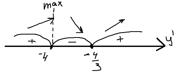 ymax=y(-4)=(-4)^3+8(-4)^2+16(-4)+3=-64+128-64+3=3