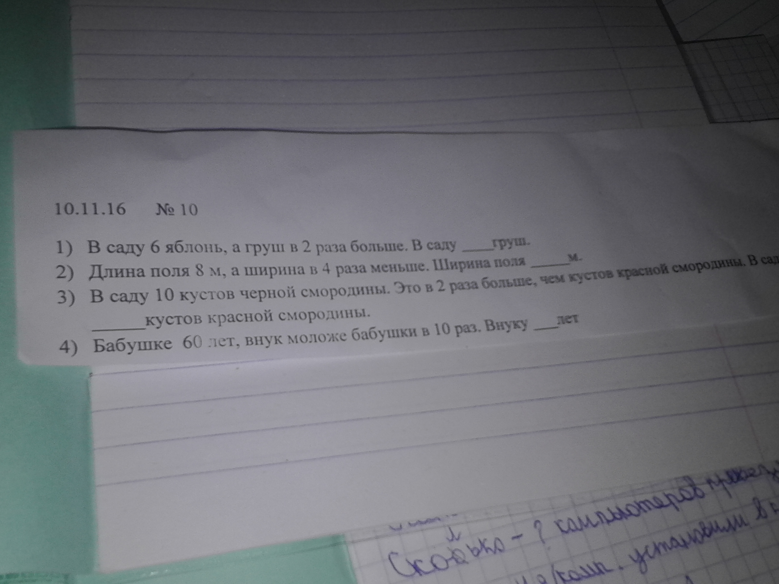 ответ:в сду 10 кустов смородины