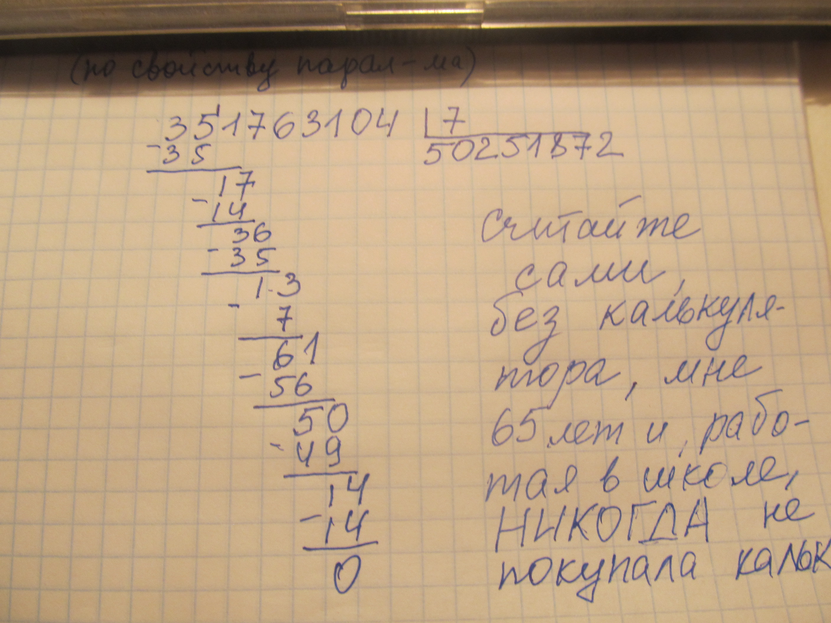 Работая без калькулятора, вы научитесь "видеть" числа, что очень понадобится потом. "Видеть" - это не раскладывая на множители знать, что можно сократить на 13, что 196=14^2 и многое другое.
