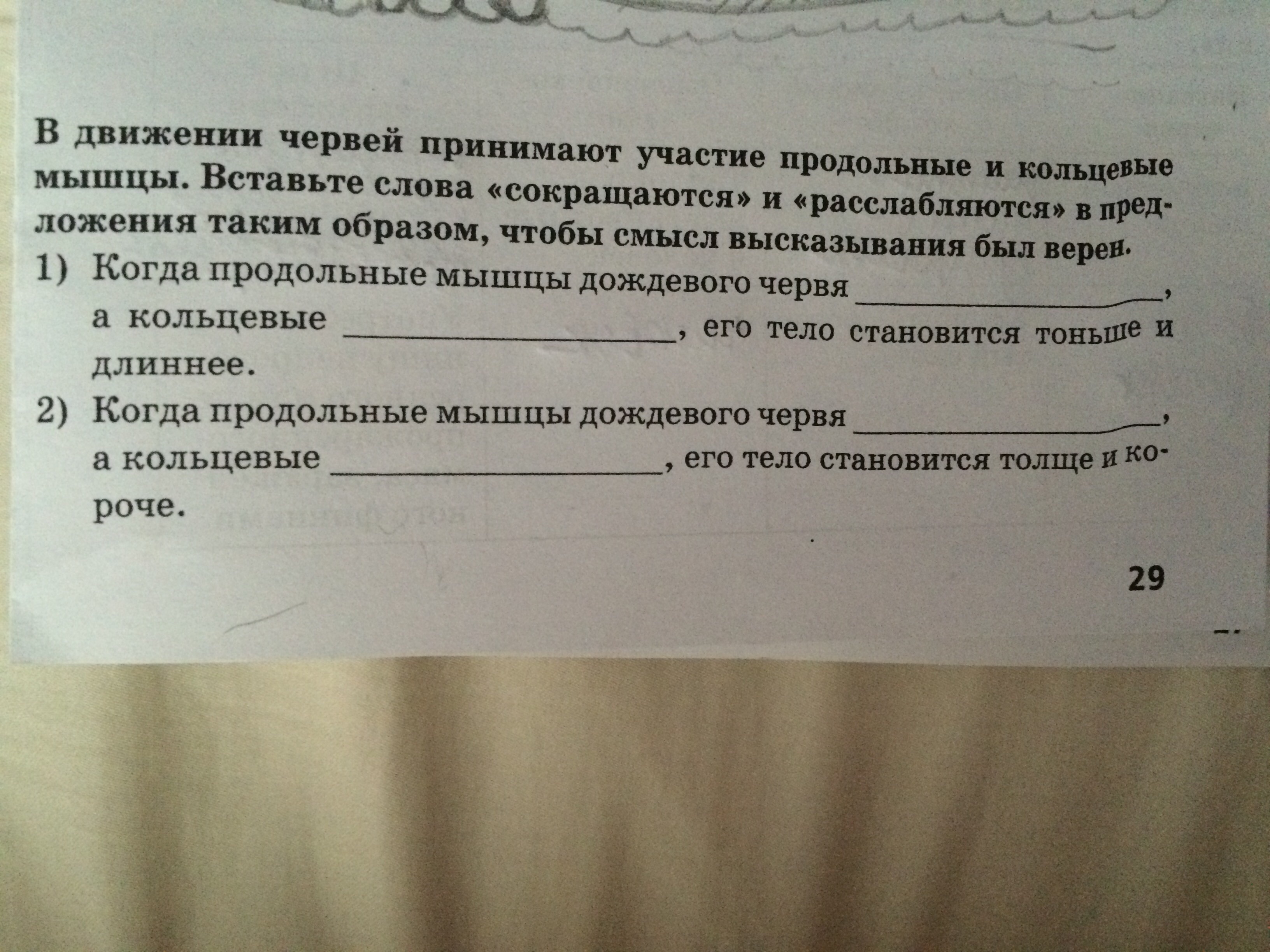 когда продольные мышцы червя сокращаются ,а кольцевые расслабляются тело червя становится толще и короче,и наоборот