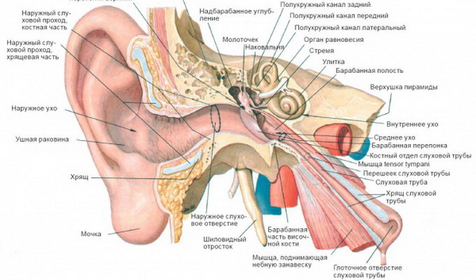 Слуховые косточки - это среднее ухо (они находятся между барабанной перепонкой- это наруж. ухо, и овальным окном- это внутренн. ухо)