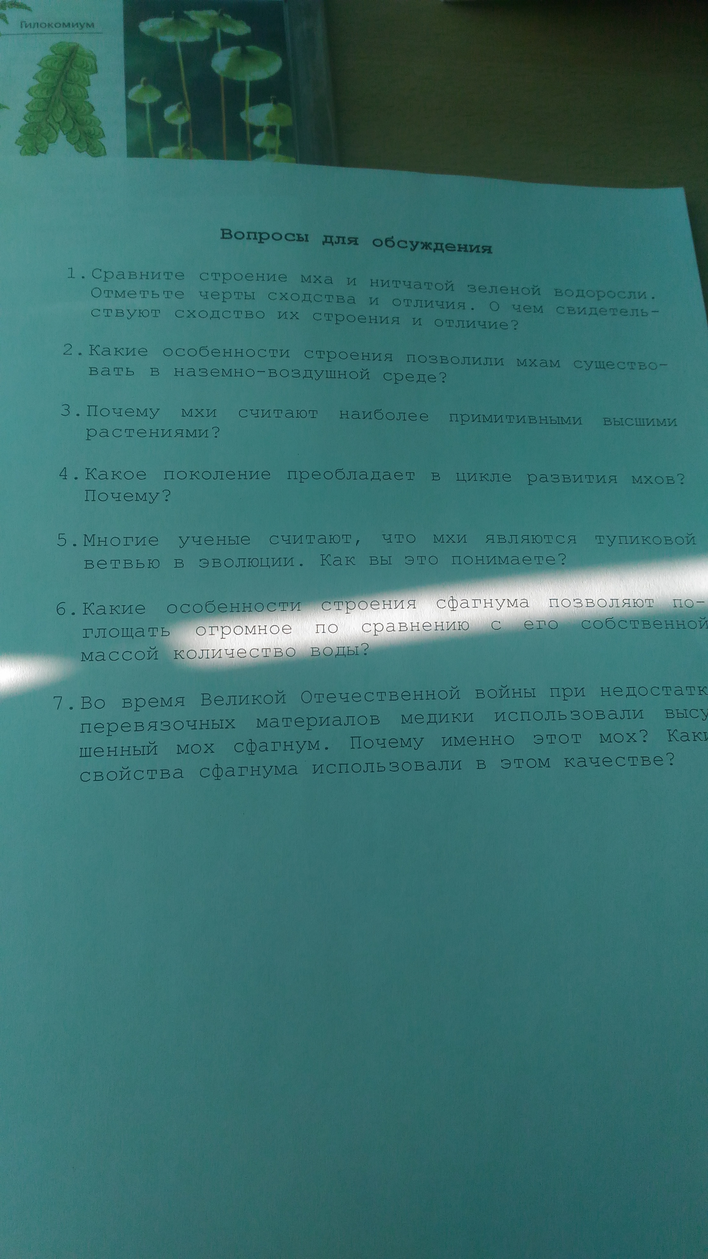 2-Мхи используют споры, корней нет, но есть резоиды, мхи имеют ткани