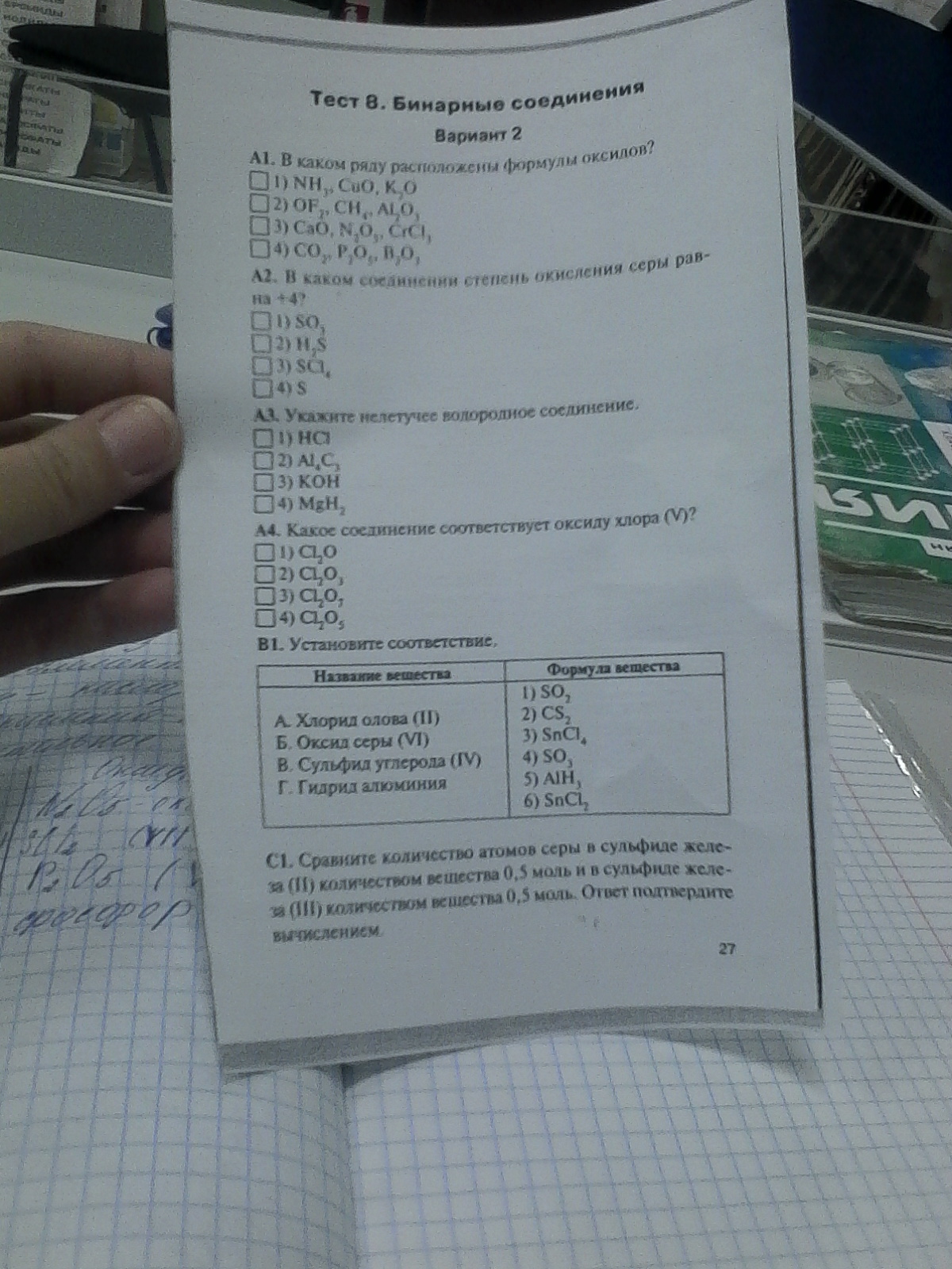A2. 3) SCl4 (четыре атома хлора забирают у серы 4 электрона, поэтому сера +4)