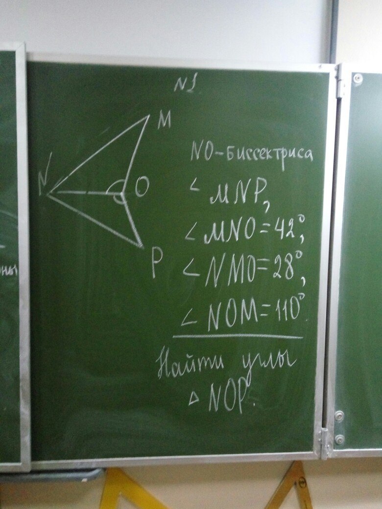 ∠PNO=42°(биссектриса); ΔNOM=ΔNOP по стороне NO и 2 углам (∠NOM=∠NOP по условию)⇒∠Р=28°. Ответ: 28; 42; 110°.
