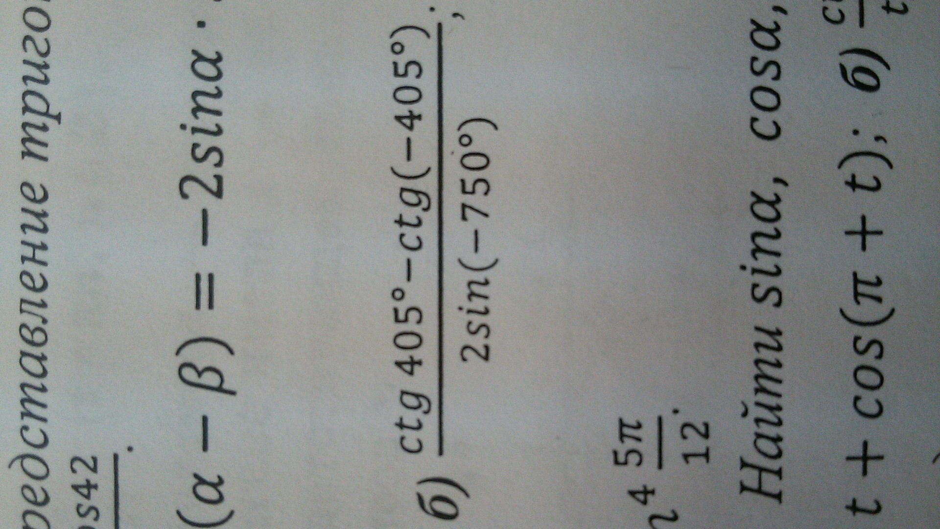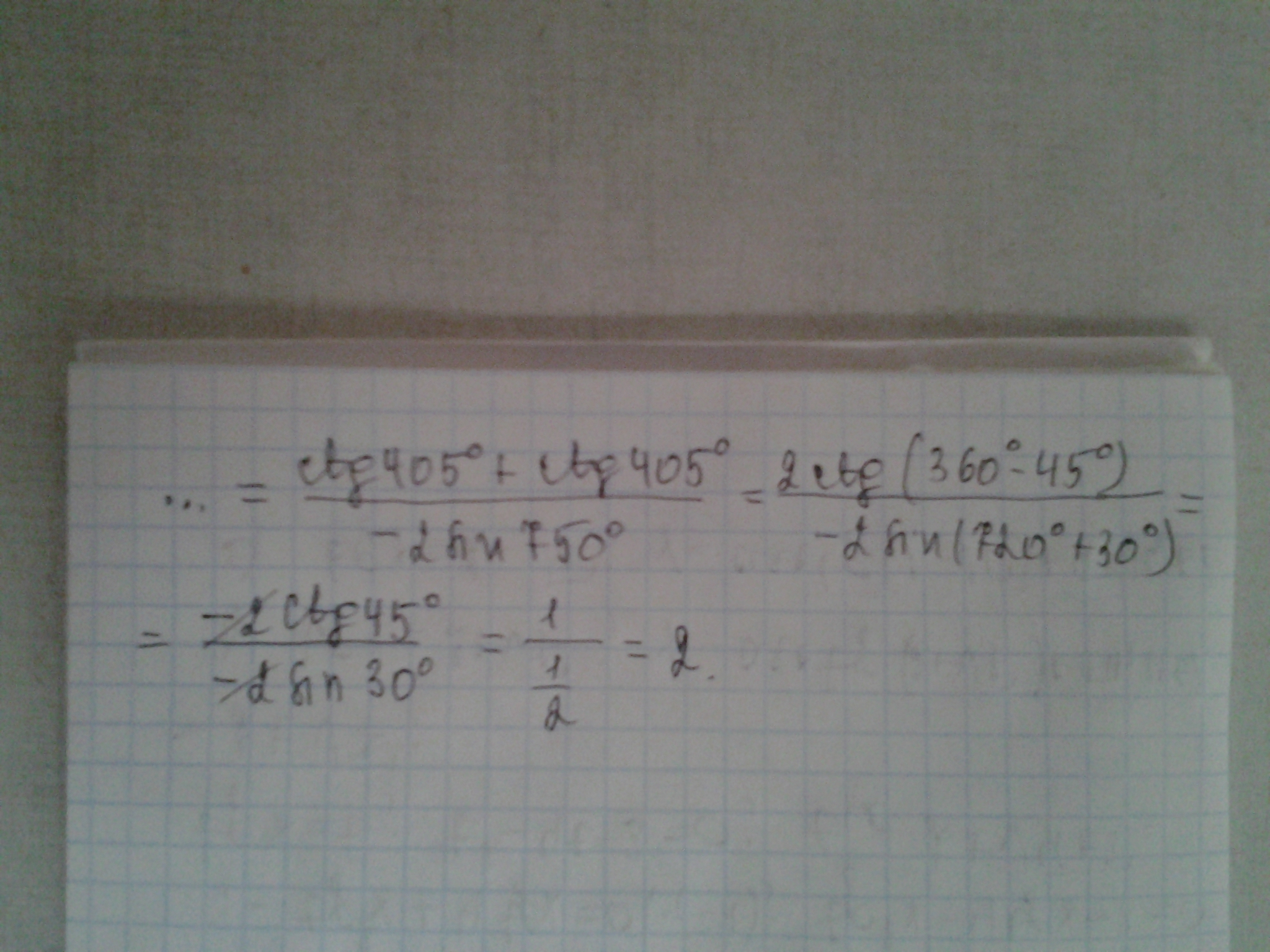 Применены табличные значения синуса и котангенса