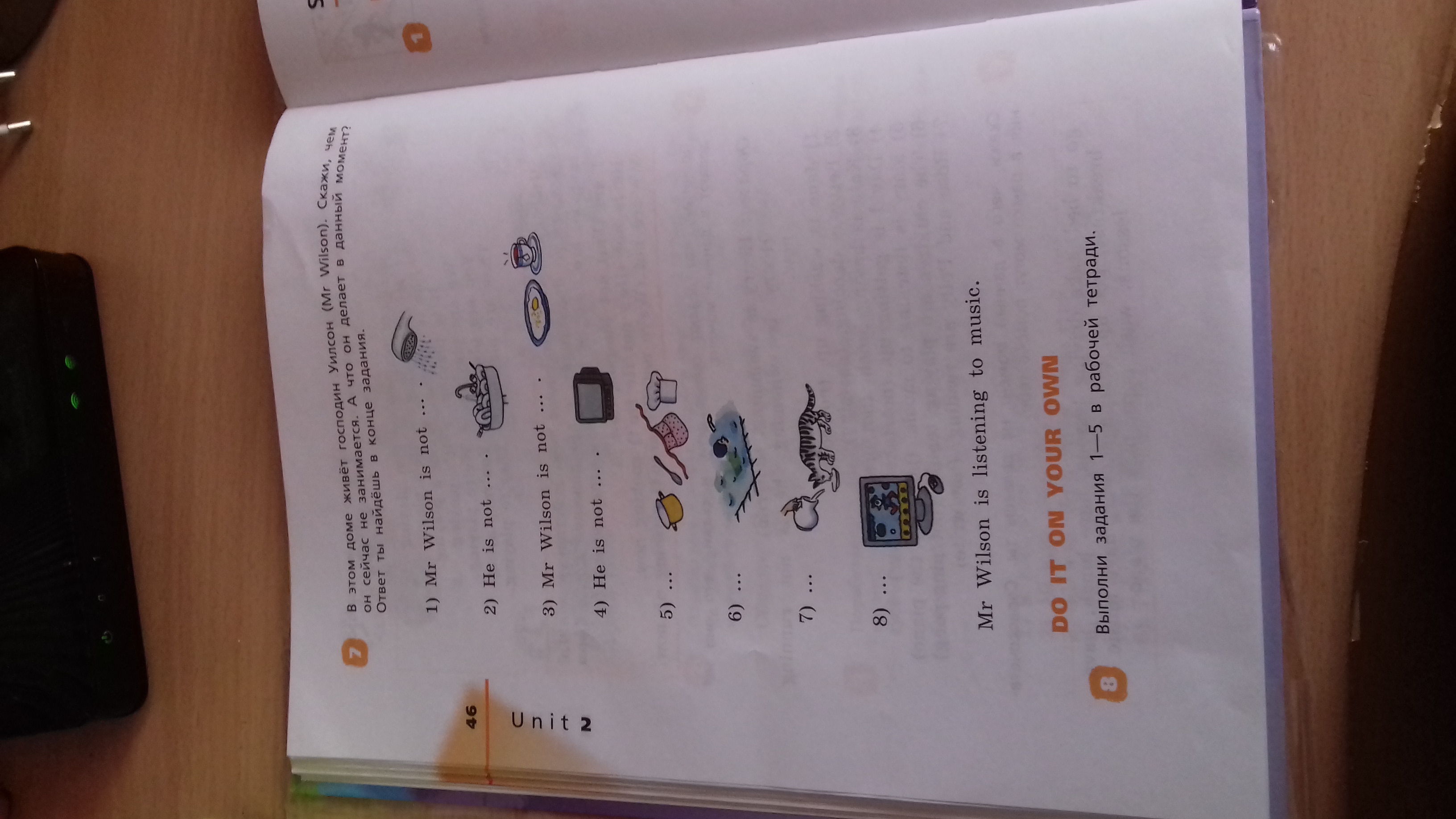 Кто разбирается в английском помогите пж!в этом ддоме живет господин Уилсон.скажи чем он не занимается сейча.а что он делает в данный момент?ответ найдёш в конце задания.