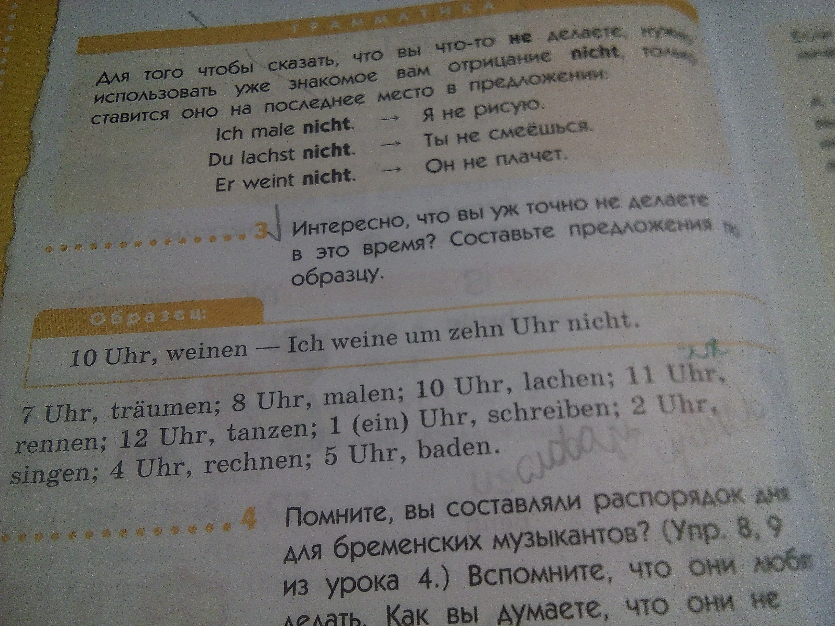 5. Ich schreibe um ein Uhr nicht.