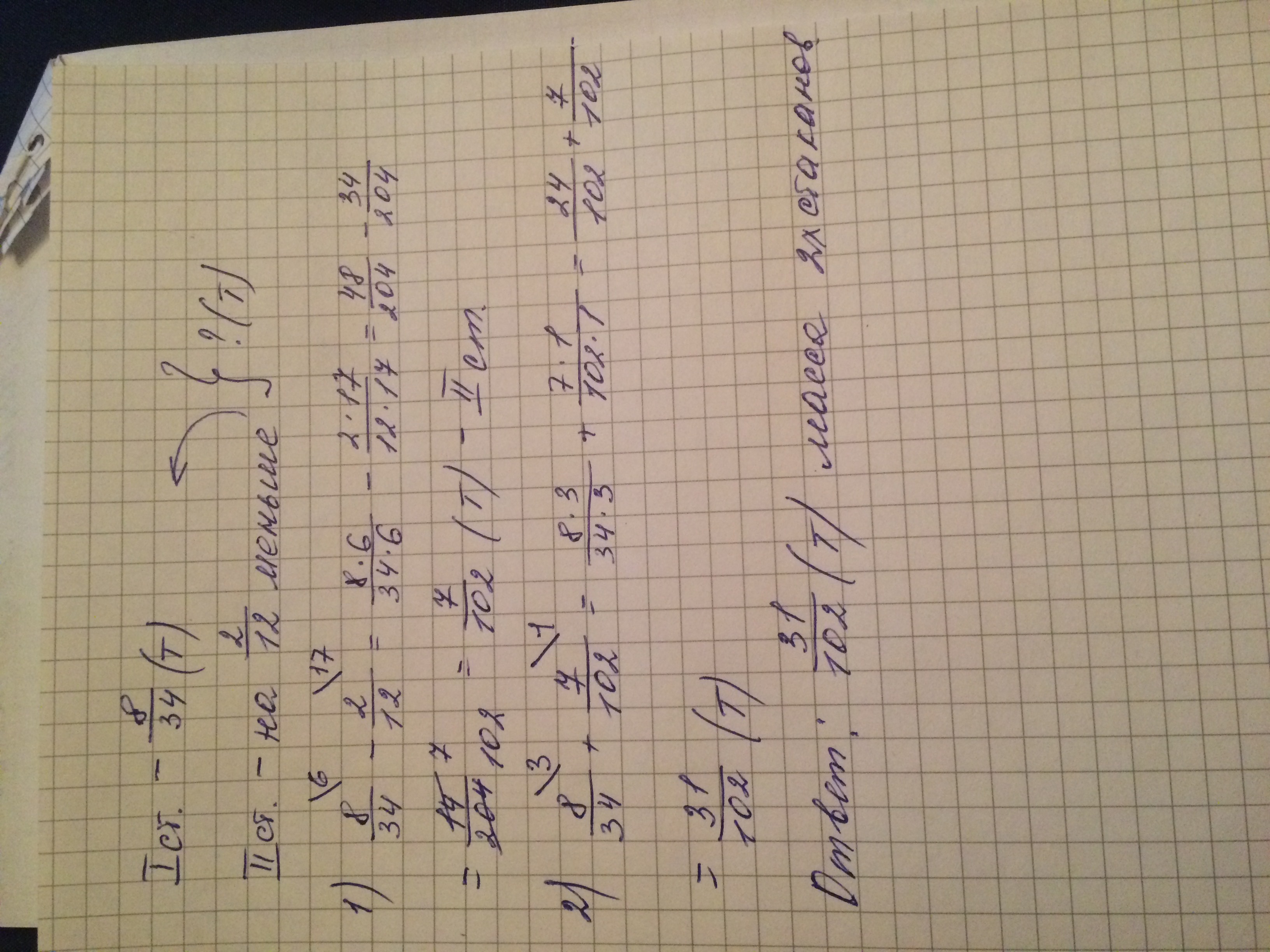 Масса одного стакана 8/ 3 4 т , а другого- на 2/1 2 т меньше.