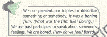 Мы используем причастия настоящего времени для описания чего-либо или кого-либо. Фильм был скучный(какой был фильм?скучный).Причастия прошедшего времени используются при описании чьих-то чувств. Нам скучно(Вы как,как себя чувствуете?? нам скучно