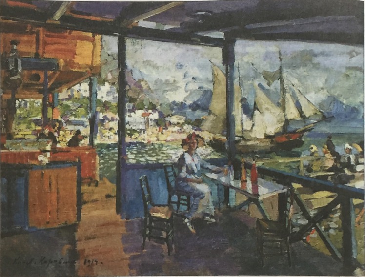 Опишите состояние людеи и природы на картине "Пристань в Гурзуфе", используя предложения со словами категории состояния и наречиями. Напишите небольшое сочинение по картине.