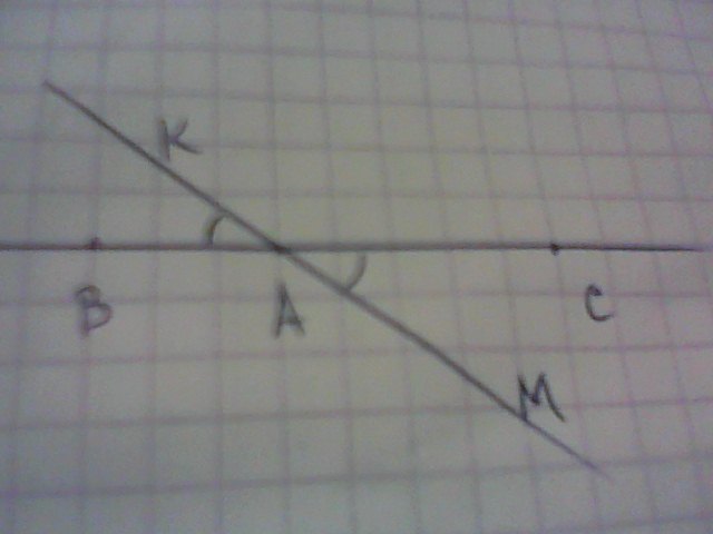 Нарисуйте прямую и отрезок BC на этой прямой. Внутри отрезка BC отметьте точку A. Нарисуйте угол BAK. С другой стороны от прямой BC постройте угол CAM, равный углу ABK. Как расположены лучи AK и AM? Как вы можете это объяснить?