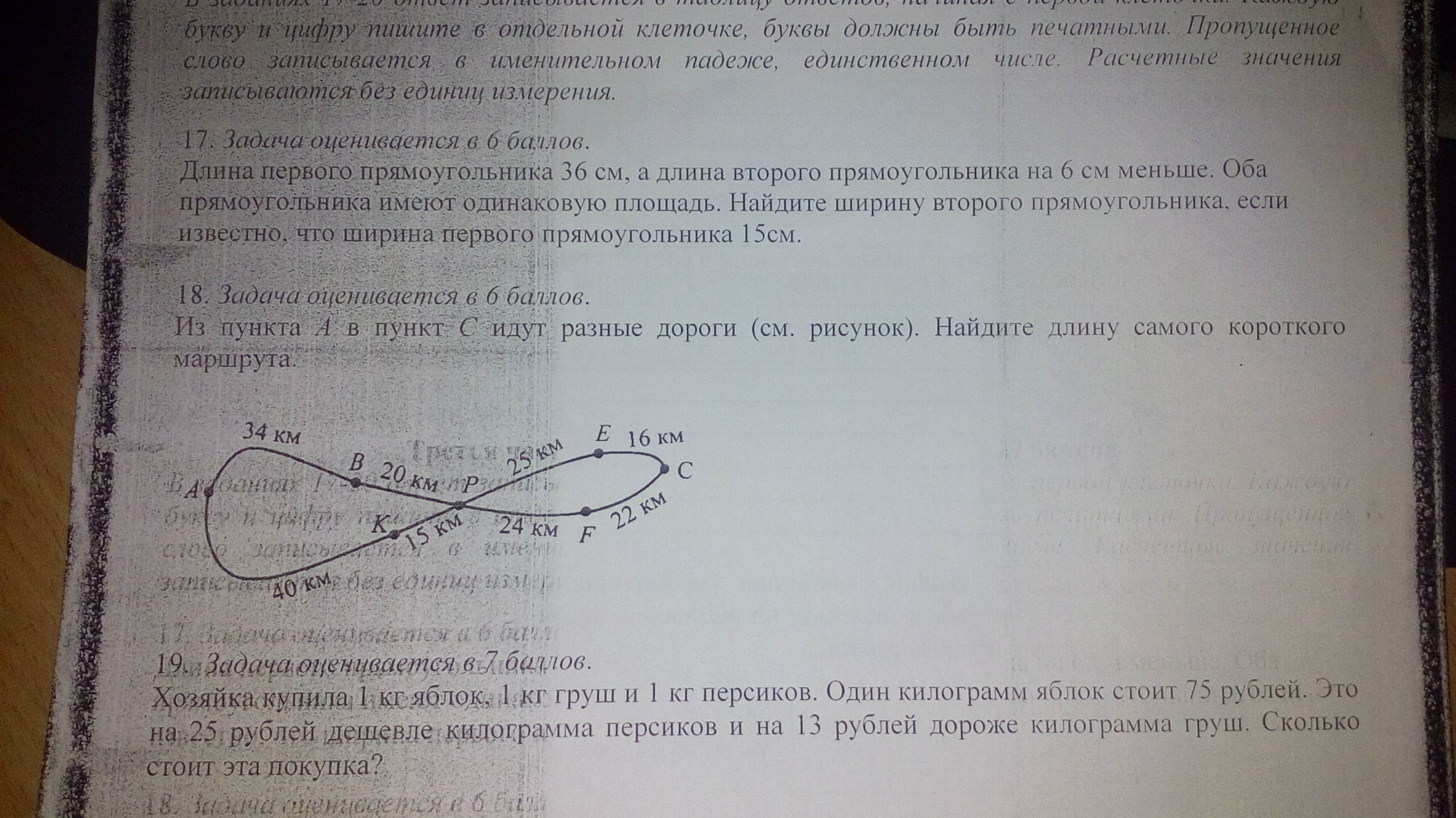 Первый путь от А до Р = 54 кмВторой путь от А до Р = 55 кмПервый путь от Р до С = 41 кмВторой путь от Р до С = 46 кмПолучается, что сначала надо идти по певому пути от А до Р, а затем по первому пути от Р до С. Итого:Наименьший путь = 54+41 = 95 км