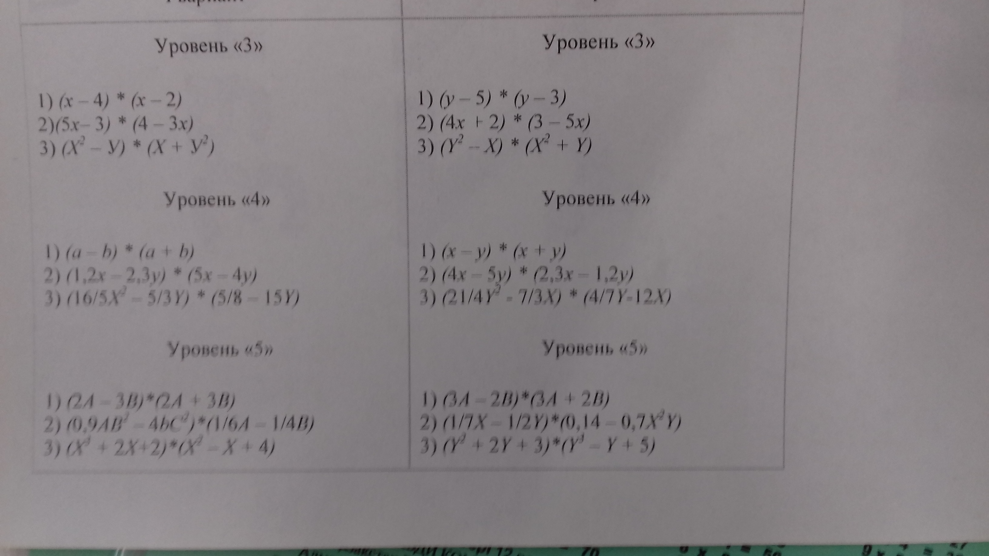 3)(Y^2-X)(X^2+Y)=Y^2X^2+Y^3-X^3-XY