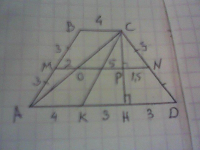 Дано: АВСD - равнобокая трапеция, АВ=СD= 6 см, МN- средняя линий,