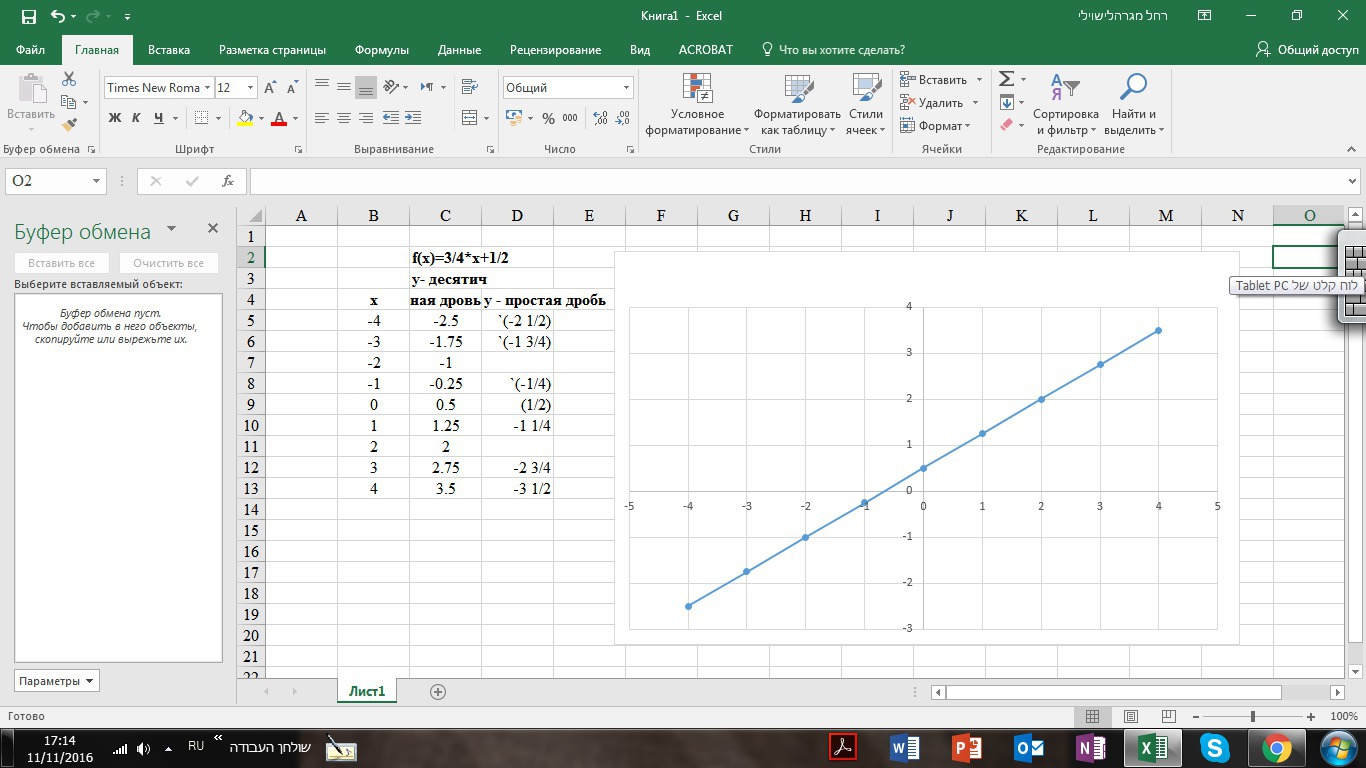 f(x)=3/4 x + 1/2 или f(x)=0.75x+0.5