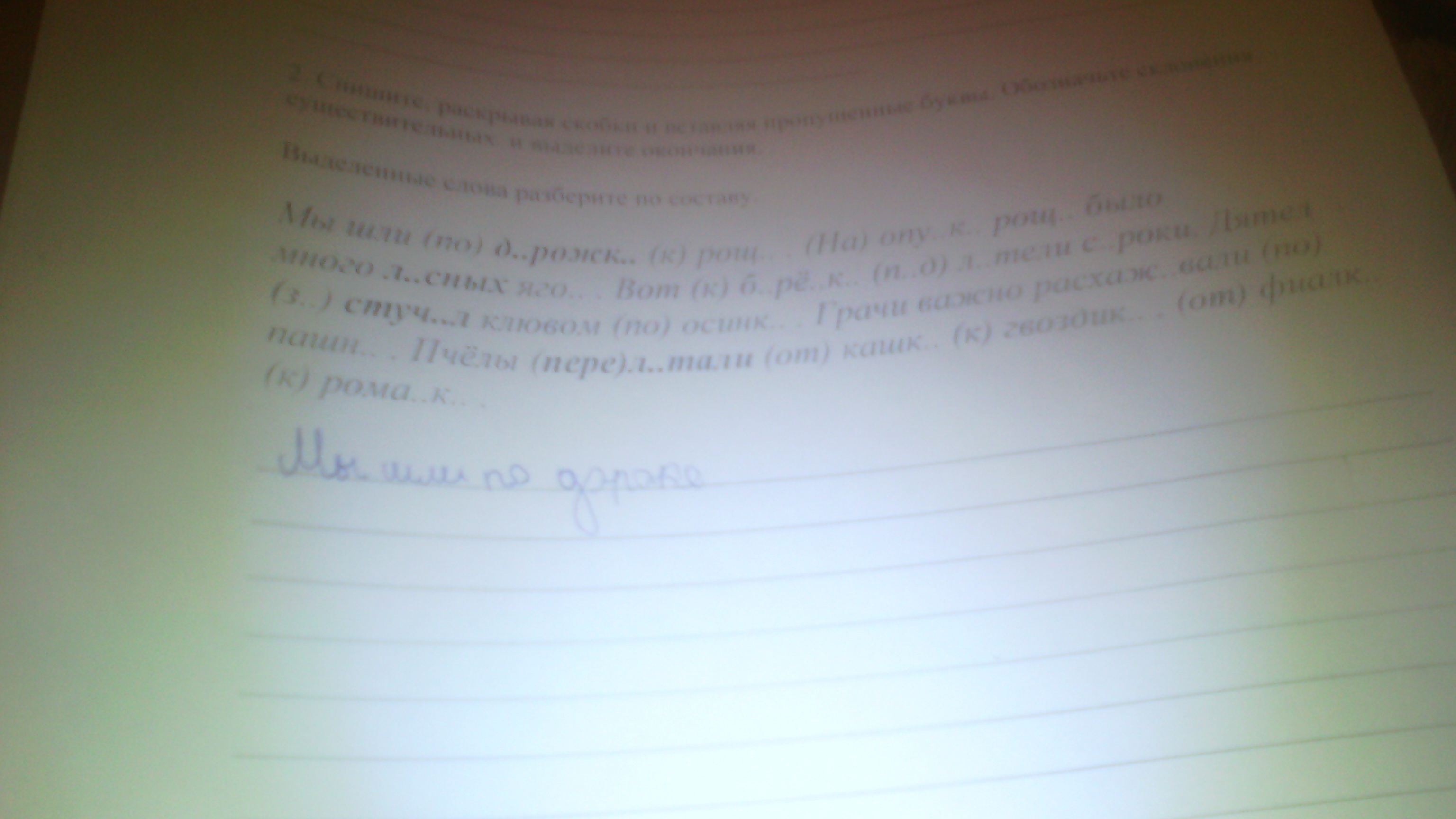 Мы пошли по дорожке к роще.На опушке рощи было много лесных ягод.Вот к берёзке подлетели сороки.Дятел застучал клювом по осинке.Грачи важно расхаживали по пашне.Пчёлы перелетали от кашки(цветок есть такой) к гвоздике, от фиалки к ромашке.