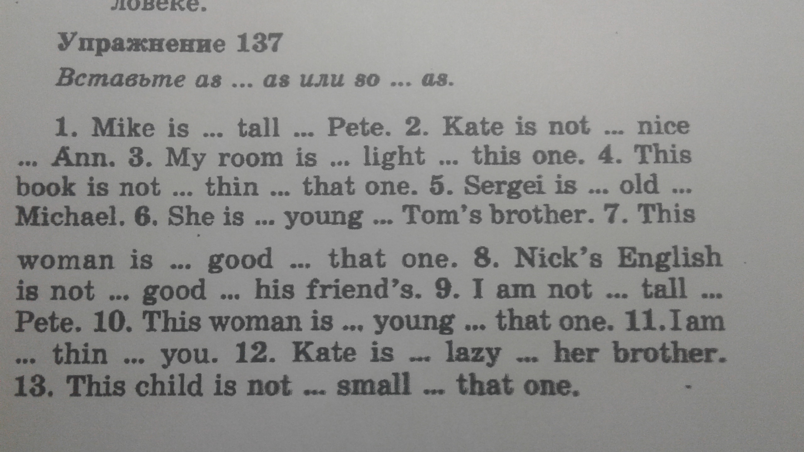 mike AS tall AS Pete.2.Kate is not SO nice AS Ann.3.my room is AS light AS this one.4.this book is not SOthin AS