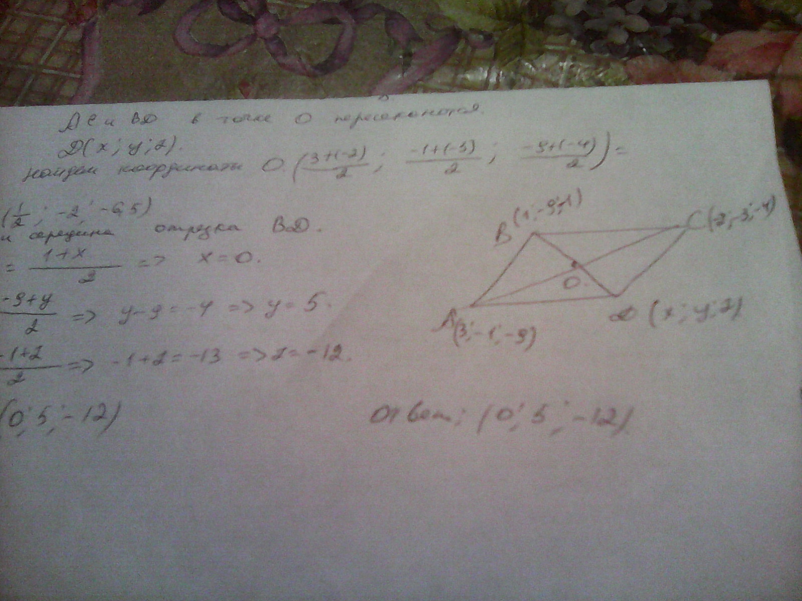 Даны 3 вершины параллелограмма А В С найти четвертую D, смежную с А и С