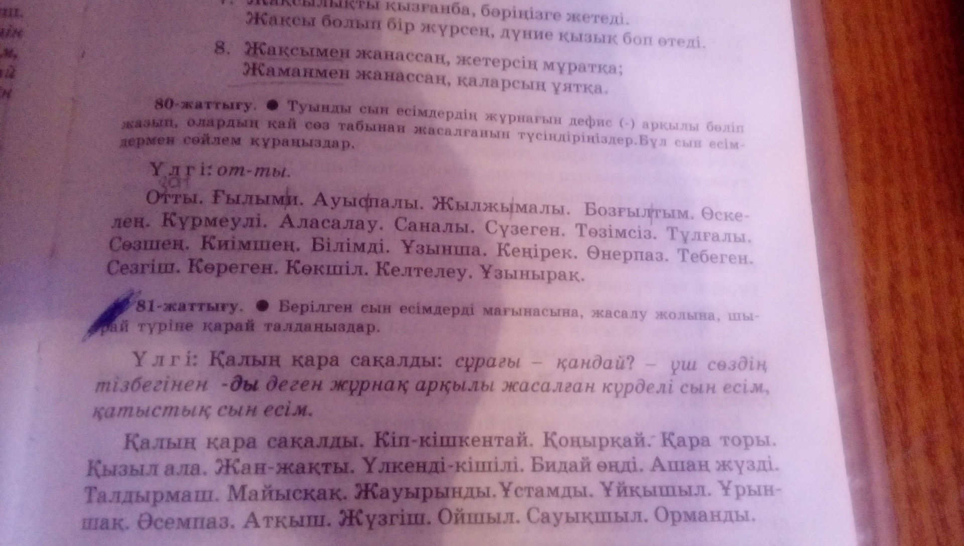 буынга болип жаз деген емес..туынды сын есимди тап деген
