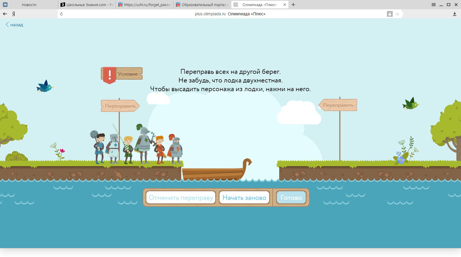 3в лодку садится рыцарь и оруженосец переплывают рыцарь выходит, а его оруженосец возвращается
