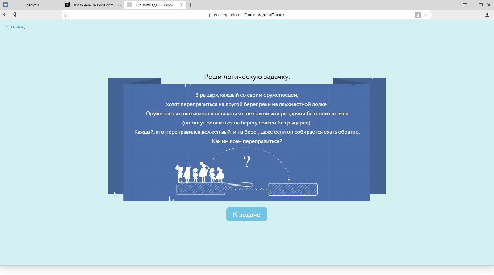 1) рыцарь и его оруженосец переплывают на тот берег рыцарь выходит, а его оруженосец возвращается