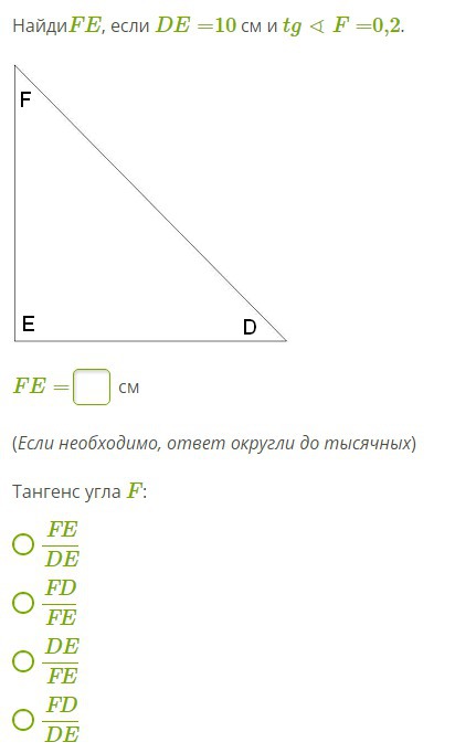 тангенс угла это отношение противолежащего катета к прилежащему, следовательно,