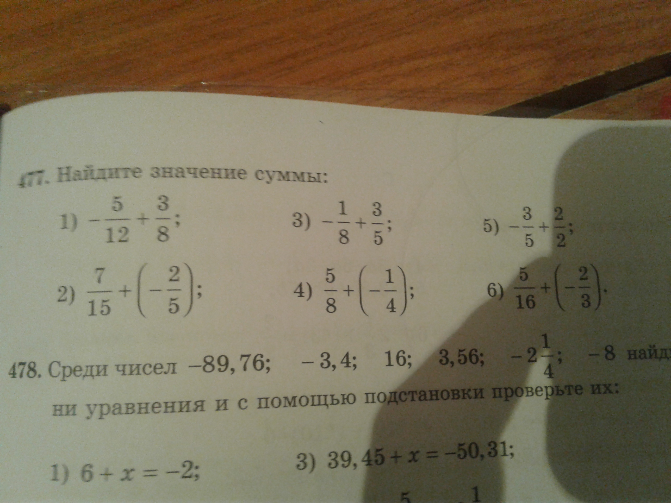 6) 5/16 + (-2/3)= 15/48 - 32/48 = -17/48