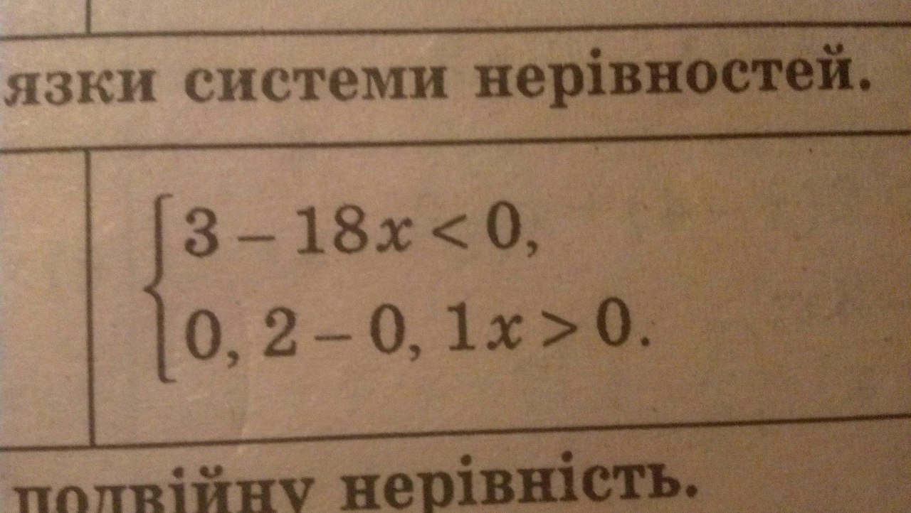3<18x; 1<6x; x>1/6; 0,2>0,1x; x<2; Ответ: (1/6;2)