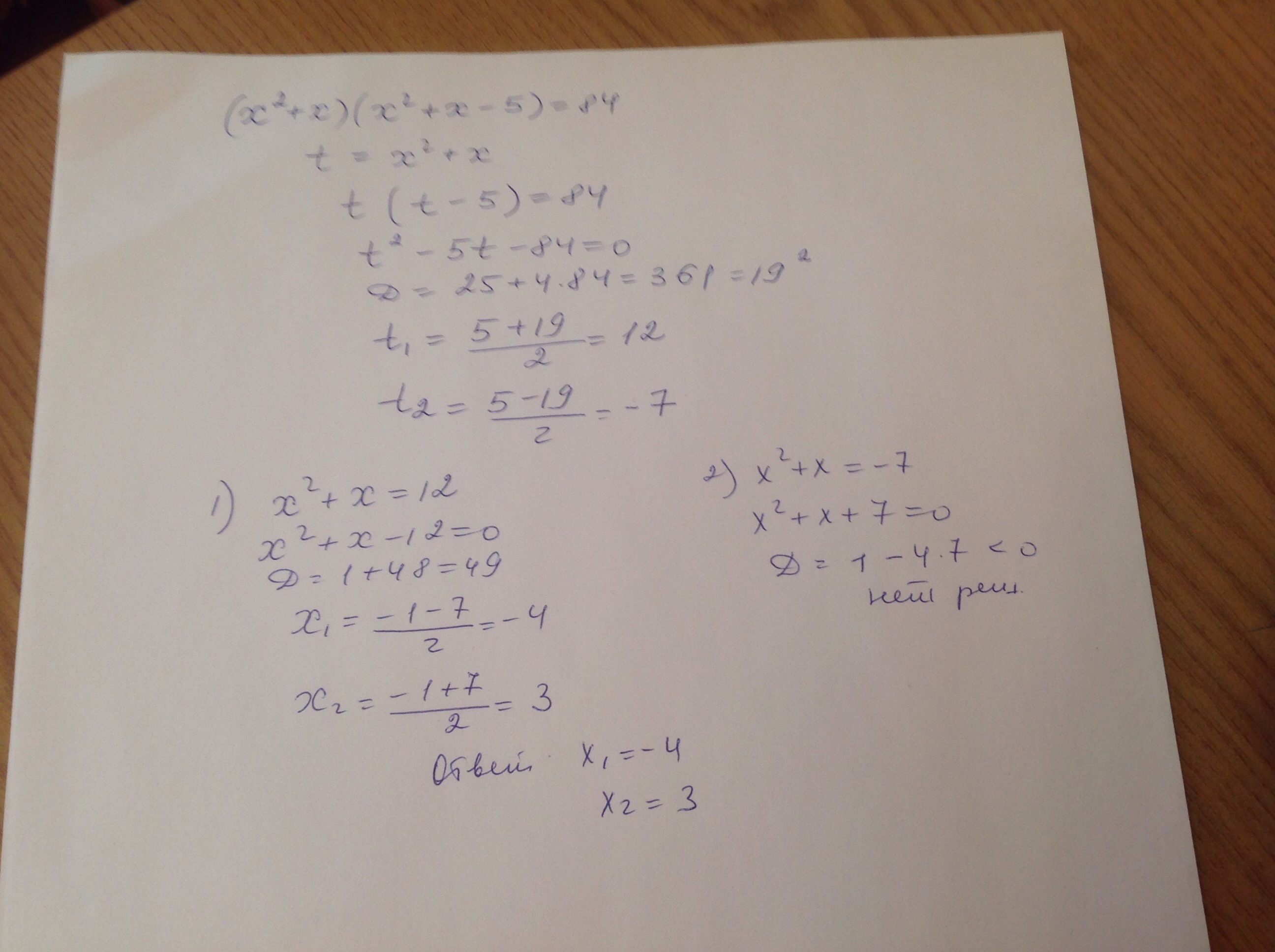 Решите пожалуйста (x^2+x)(x^2+x-5)=84