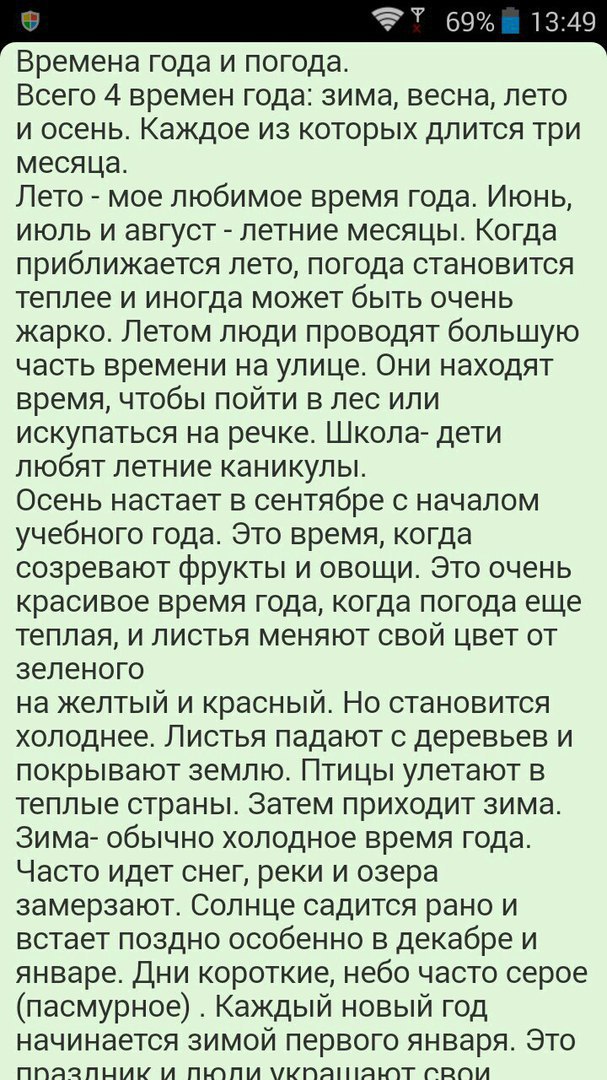 warm countries. Then winter comes. Winter is usually a cold season. It often snows, rivers and lakes are frozen.