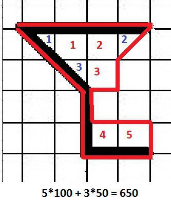 Площадь 1 клетки = 10*10 мм = 100 мм²