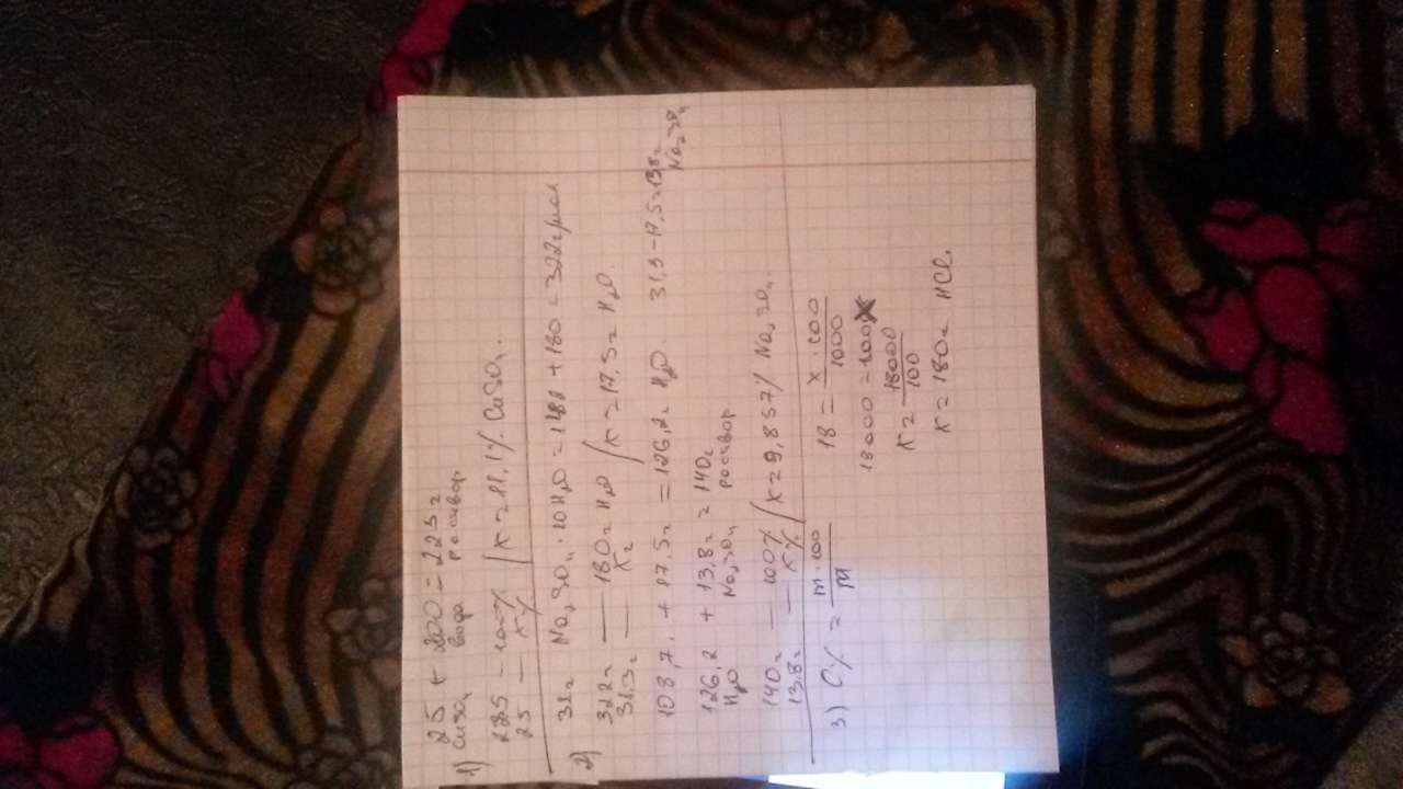 2) 31.3 глауберовой соли растворили в 108,7 мл H2O. Какова массовая доля Na2SO4 в растворе