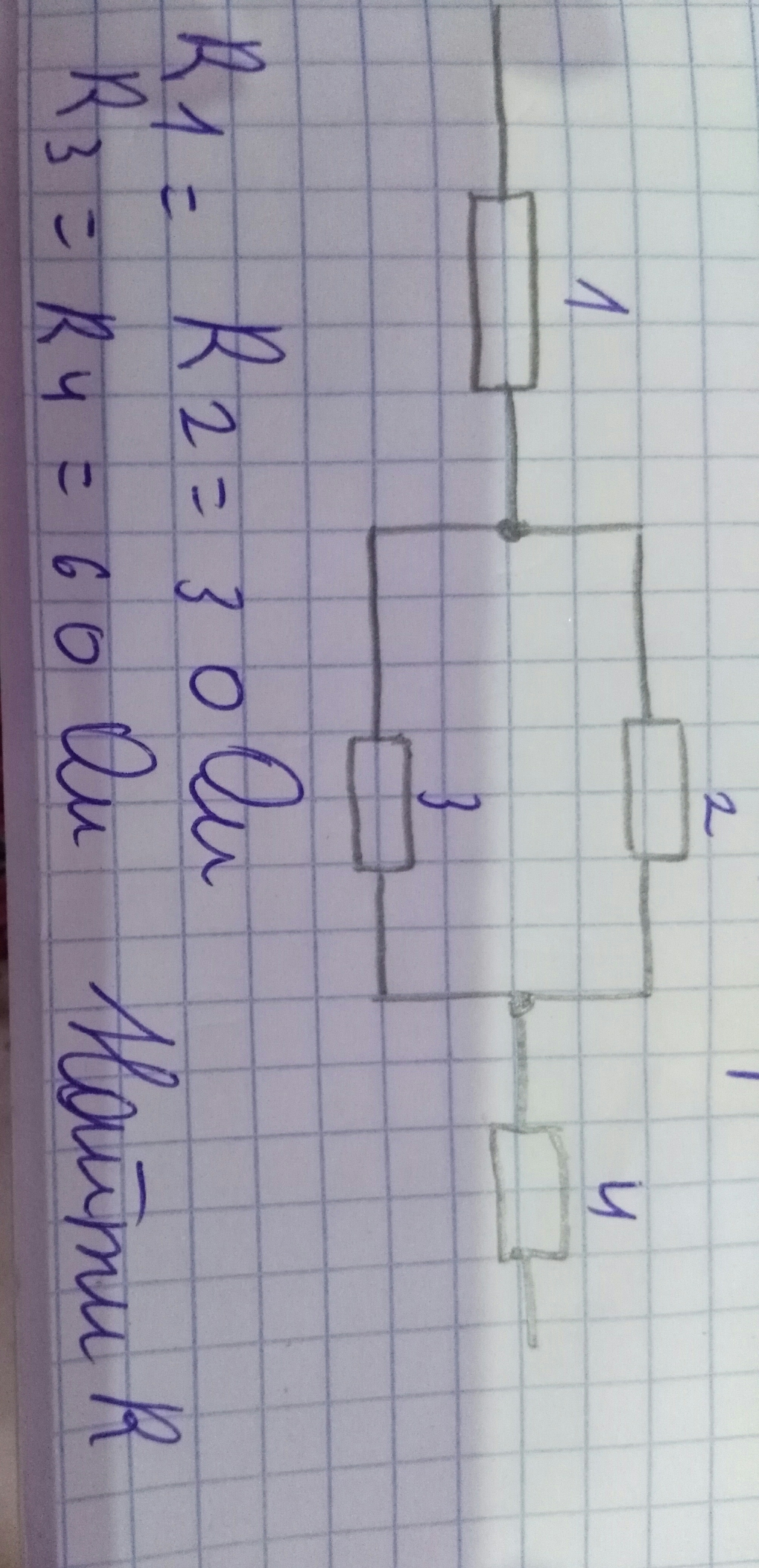 R = R1 + R23 + R4 = 60 + 20 + 60 = 140 Ом