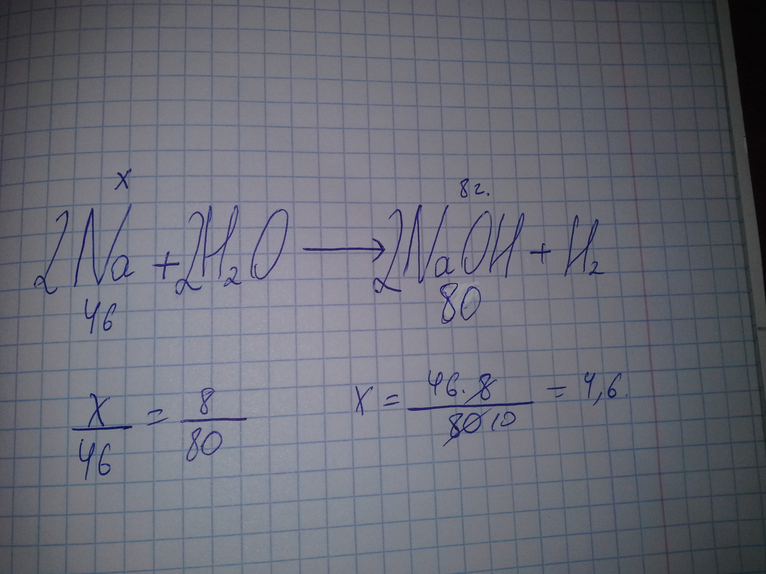 При взаимодействии натрия с водой образовалось 8г гидроксида натрия. Какова масса натрия,вступившего в реакцию?