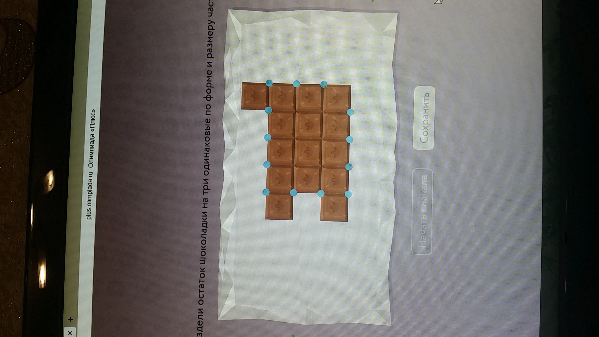 раздели остаток шоколадки на три одинаковые по форме и размеру части пожалуйста помогите рисунки