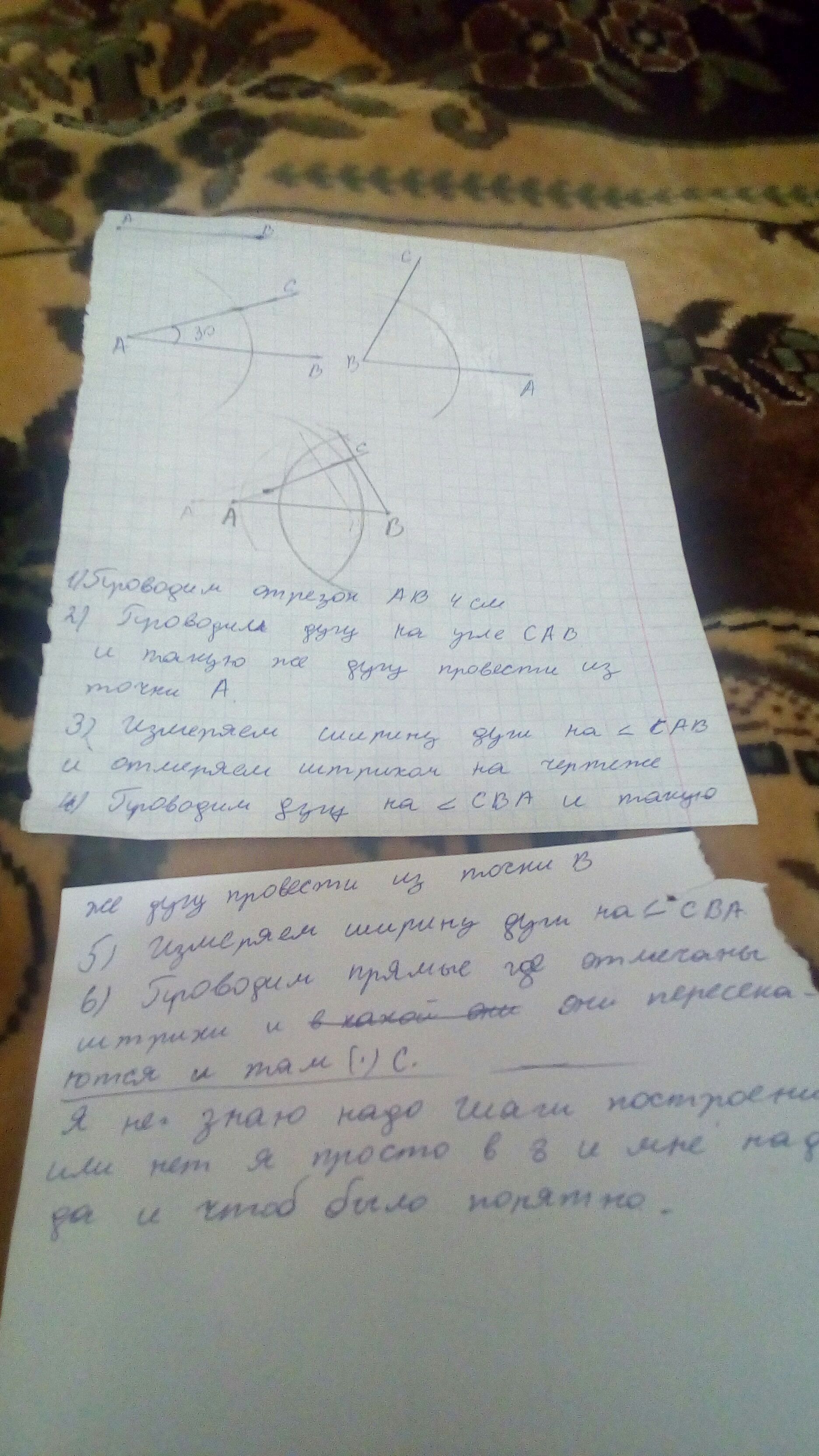 С помощью линейки и транспортира постройте треугольник ABC и укажите его вид если: Сторона А В ровна 4 см а углы С А В и С В А соответственно равны 30 градусов и 70 градусов.