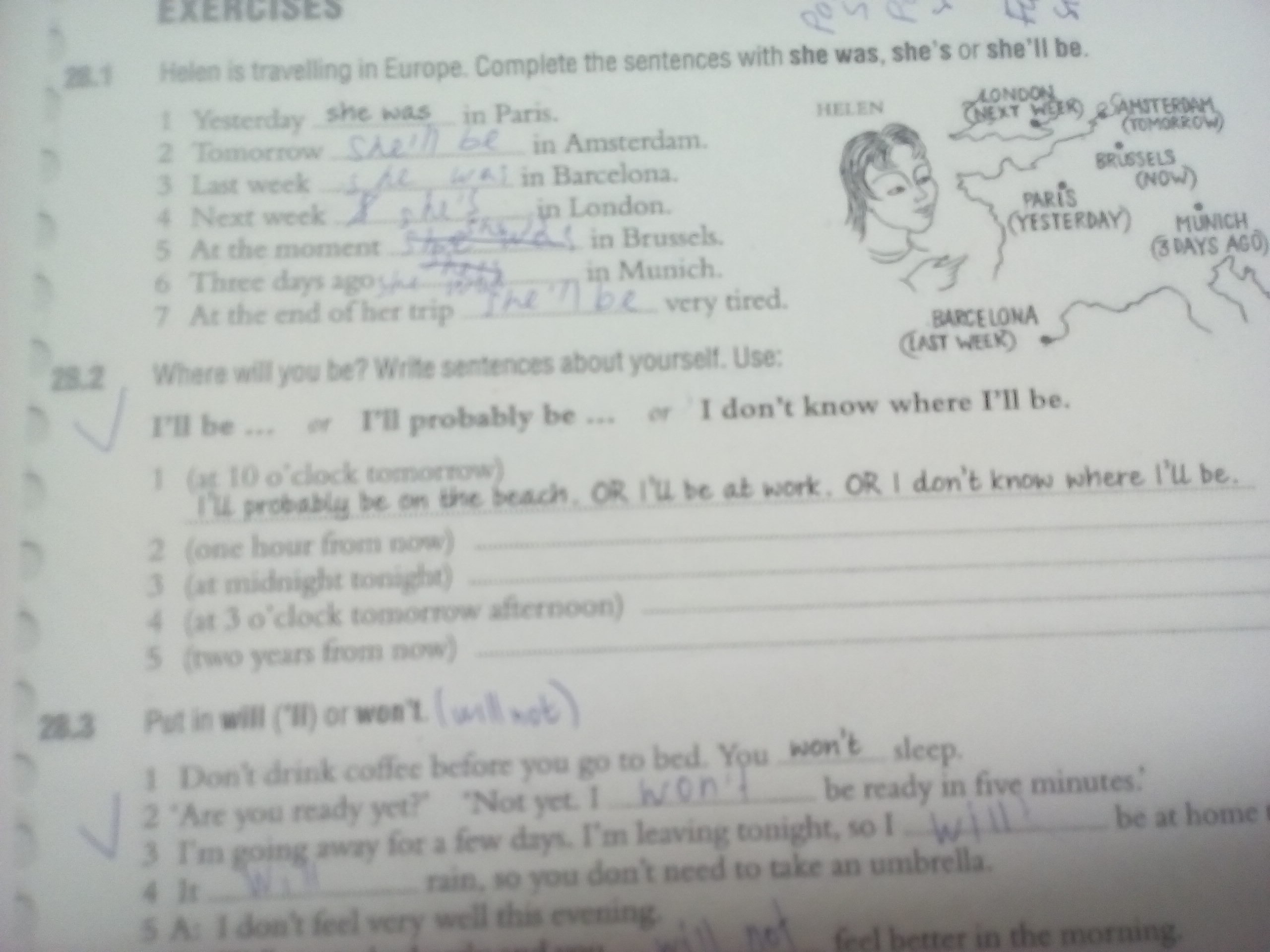 4.I'll probably be at school at 3 o'clock tomorrow afternoon