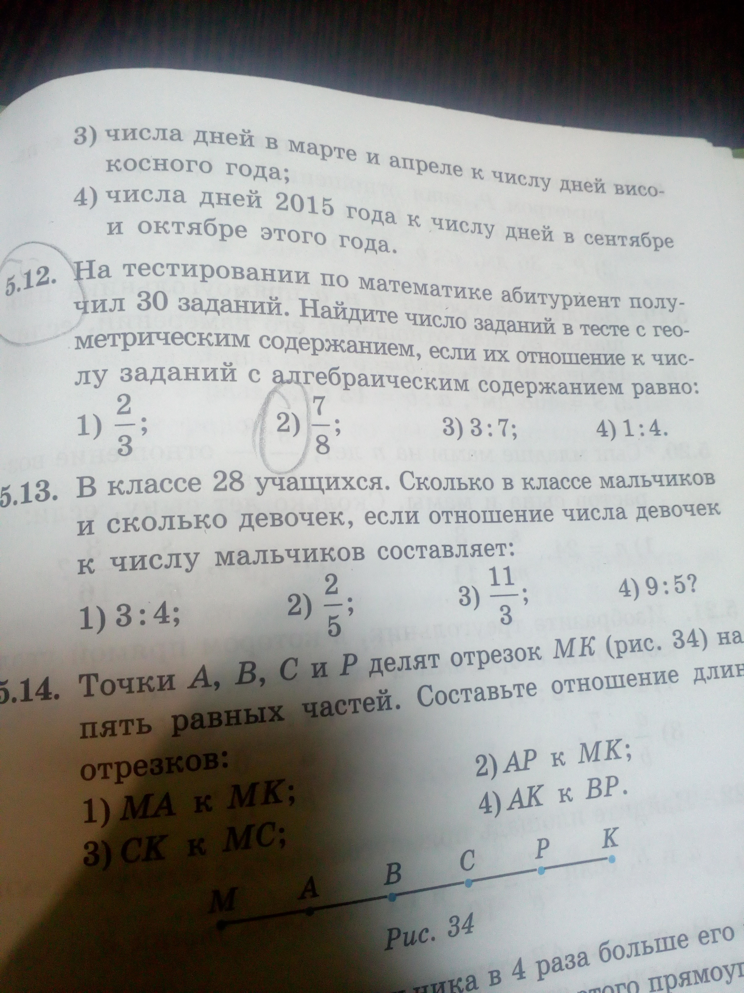 Пусть х заданий составляет одна часть, тогда задач с геометрическим содержанием 7х , с алгебраическим содержанием 8х. Зная, что задач всего 30 , составим уравнение: