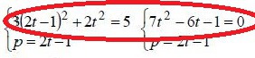 3(2t-1)²+2t²-5=0 ⇒ 3(4t²-4t+1)+2t²-5=12t²-12t+3+2t²-5=14t²-12t-2=0