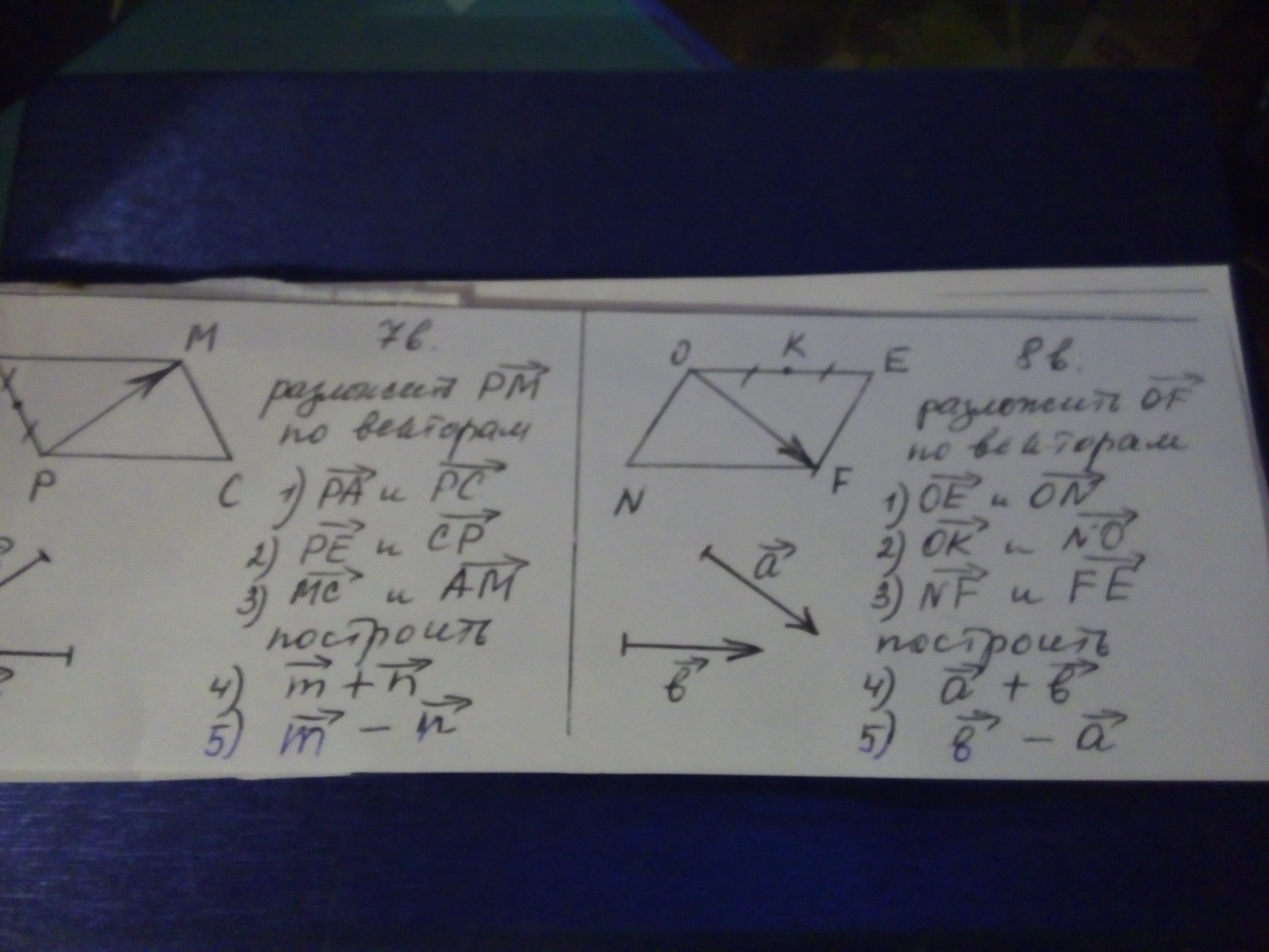 1 ) РА и РС 2) РЕ и СР 3 ) МС и АМ построить 4 ) м + n 5 ) m - n
