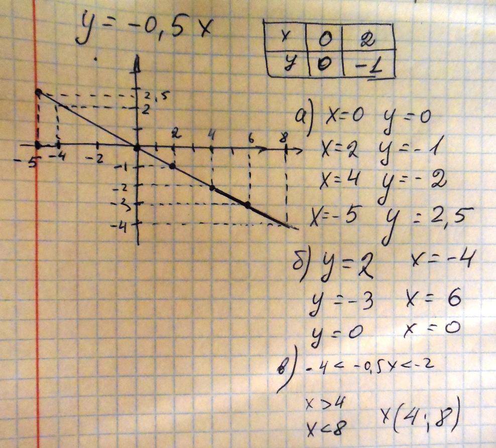 а) значение у , соответствующее значению х, равному 0;2;4;-5