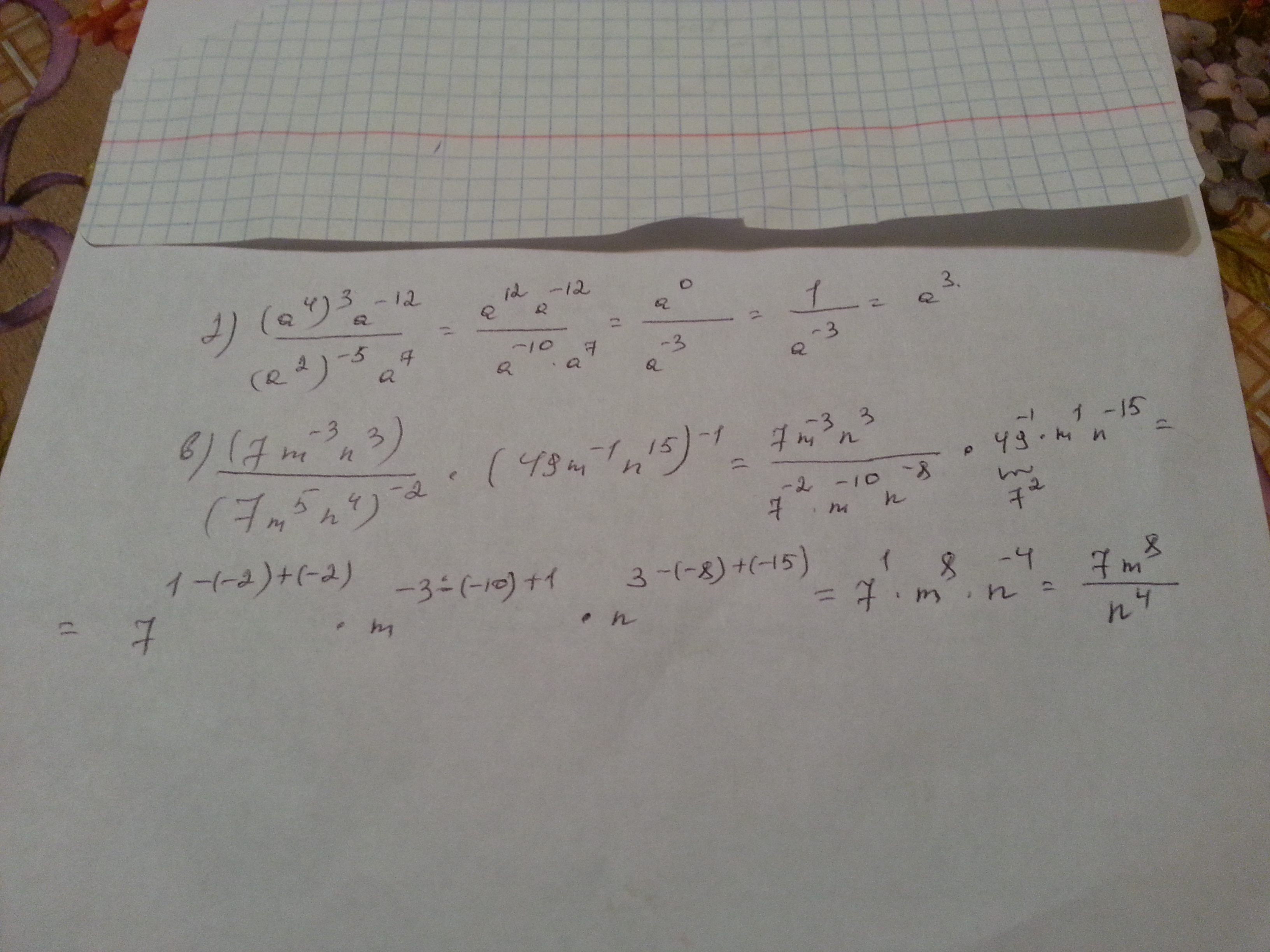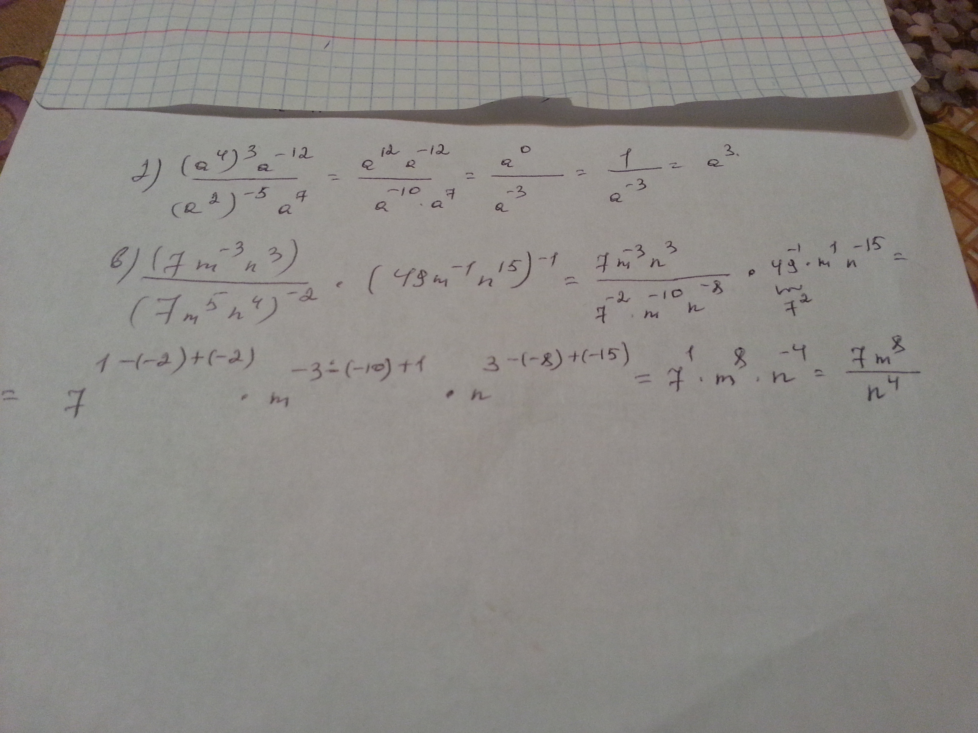 1)Упростите выражение (7m^-3n^3):(7m^5n^4)^-2*(49m^-1n^15)^-1
