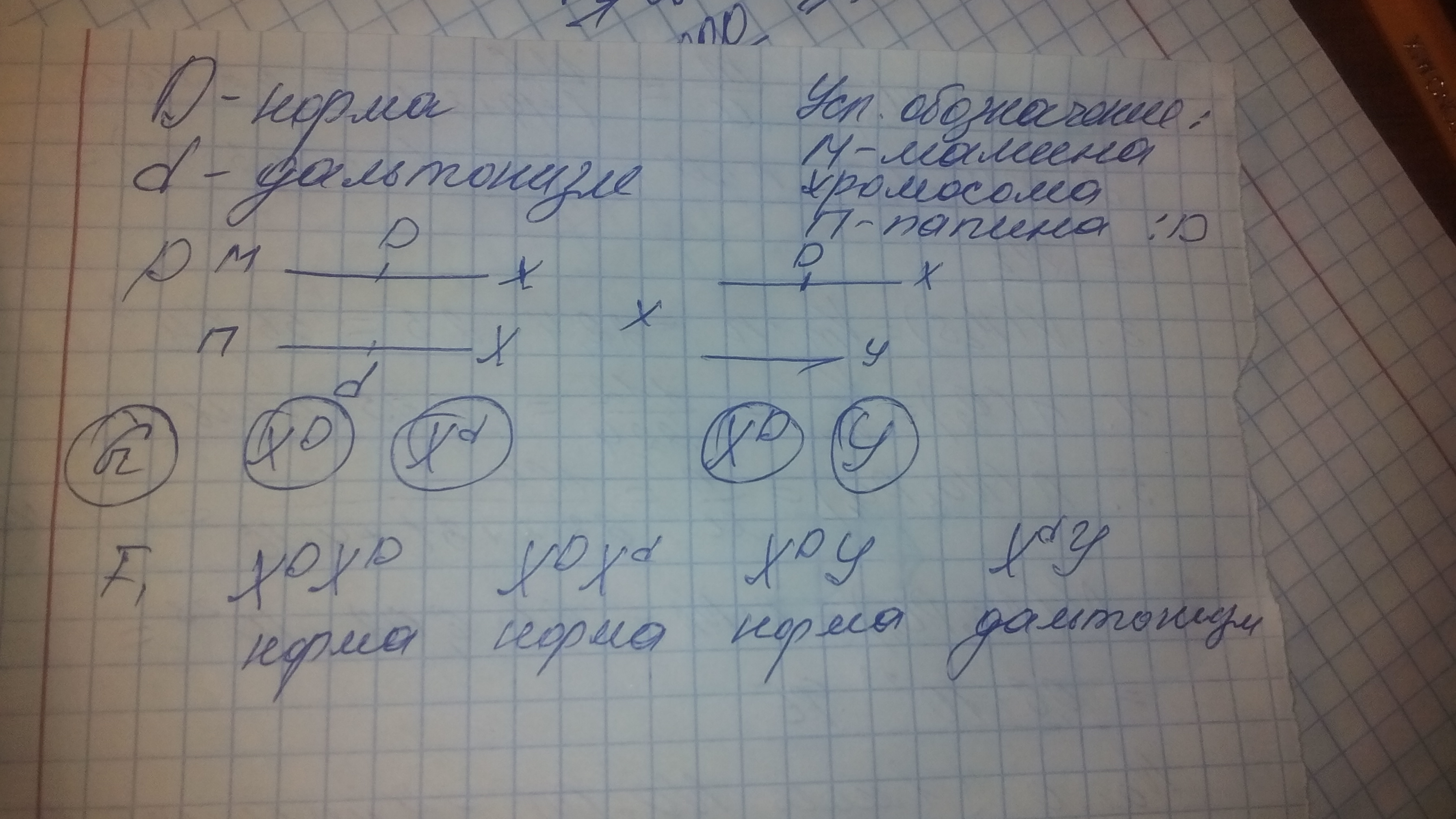 У человека ген, вызывающий дальтонизм, локализован в Х-хромосоме. Состояние болезни вызывается рецессивным геном, состояние здоровья – доминантным. Девушка, имеющая нормальное зрение, отец которой обладал цветовой слепотой, выходит за муж за нормального мужчину, отец которого также страдал цветовой слепотой. Какое зрение можно ожидать у детей от этого брака?