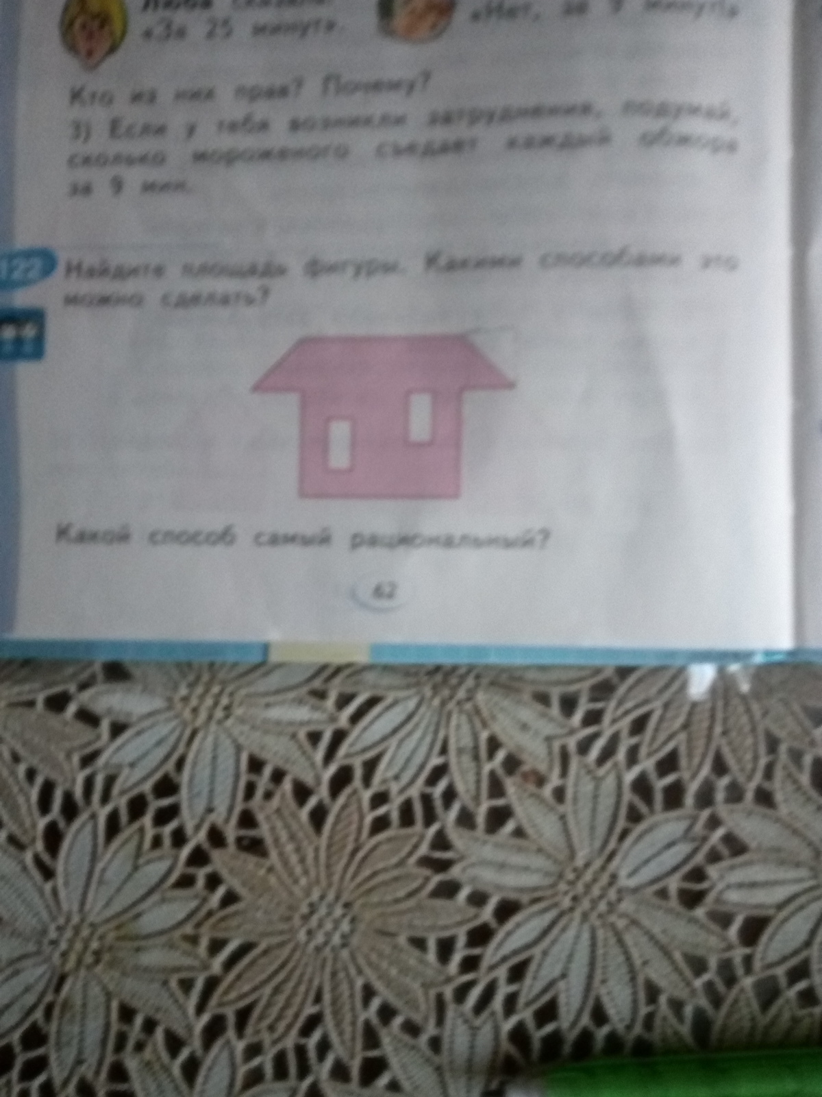 найти сначала трапецию. потом прямоугольник. потом найти окна. из прямоугольника вычесть окна и прибавить крышу