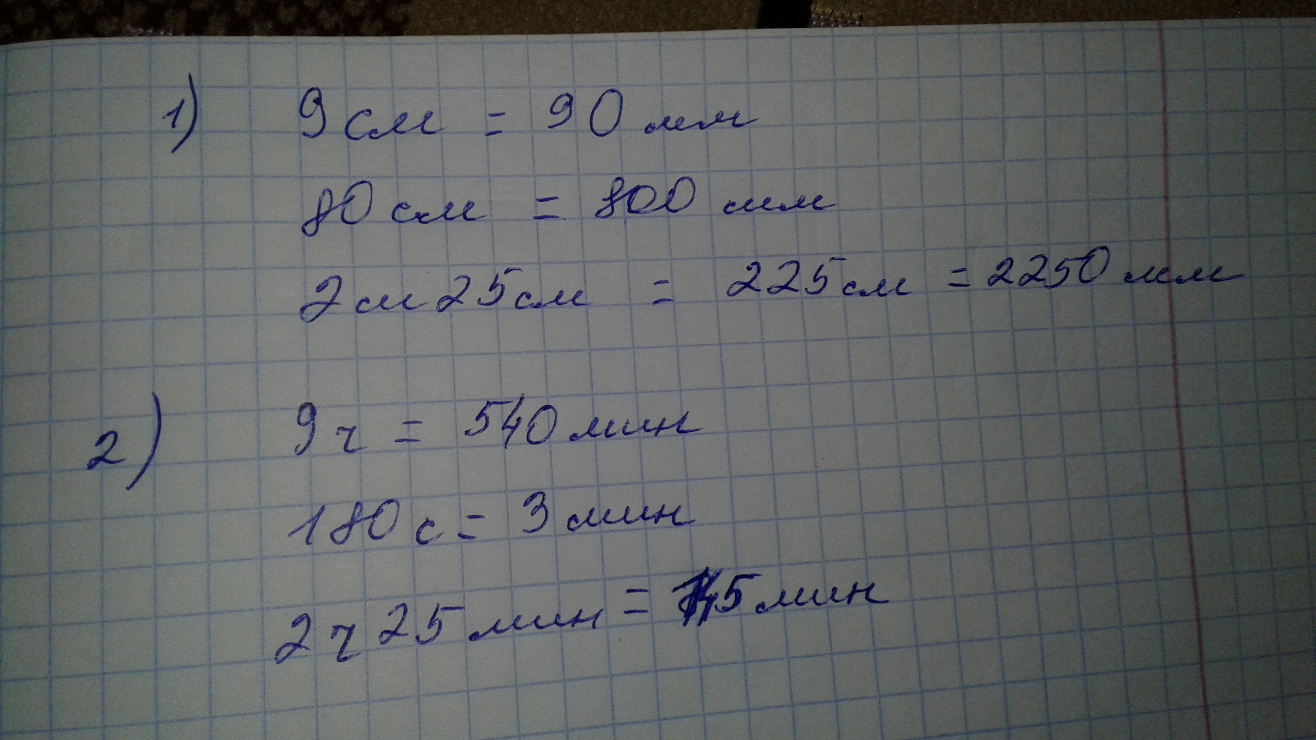 1) в миллиметрах: 9 см, 80 см, 2 м 25 см;
