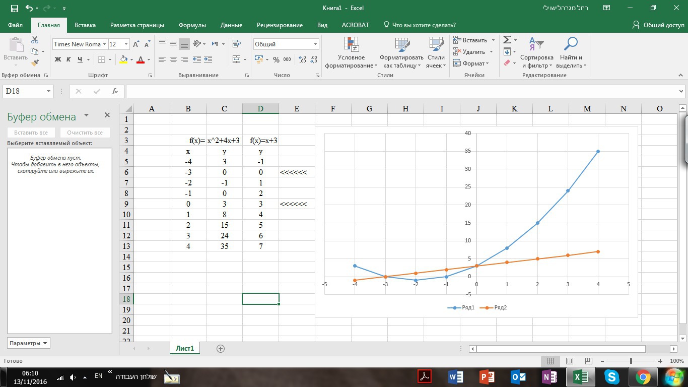 В одной системе координат постройте график функции и укажите координаты их точек пересечения. Проверьте результат подстановкой: у=х^2+4х+3 и у=х+3