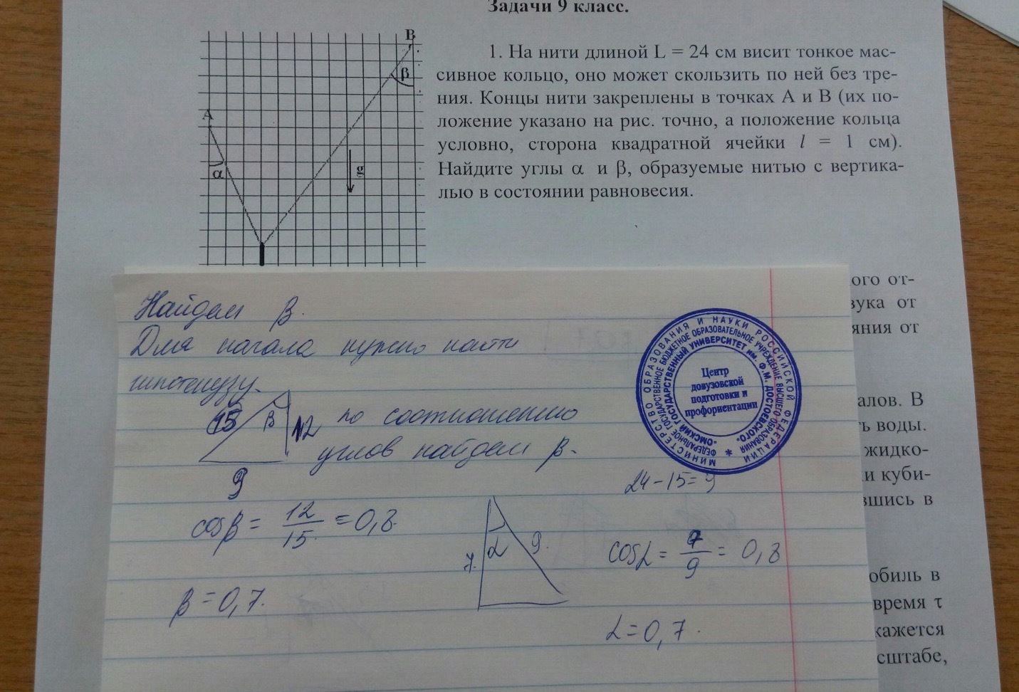 Задачу вы решили не правильно сам сидел на этой олимпиаде там углы требуют найти в развернутом виде без кольца