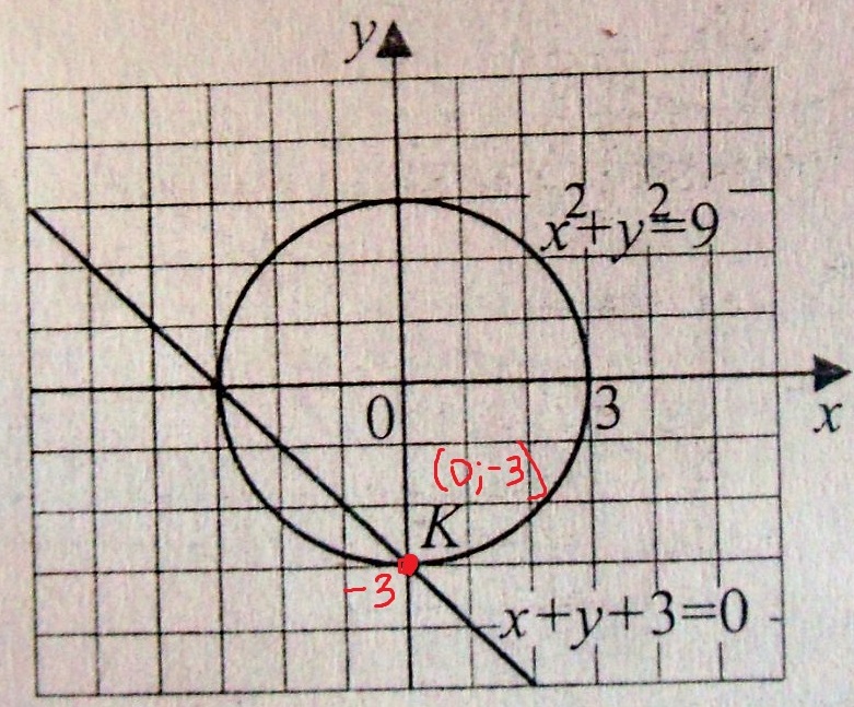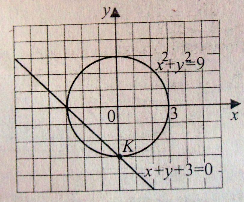 На рисунке изображены графики функций x^2+y^2=9 y+x+3=0 Укажите координаты точки K