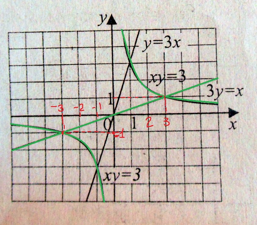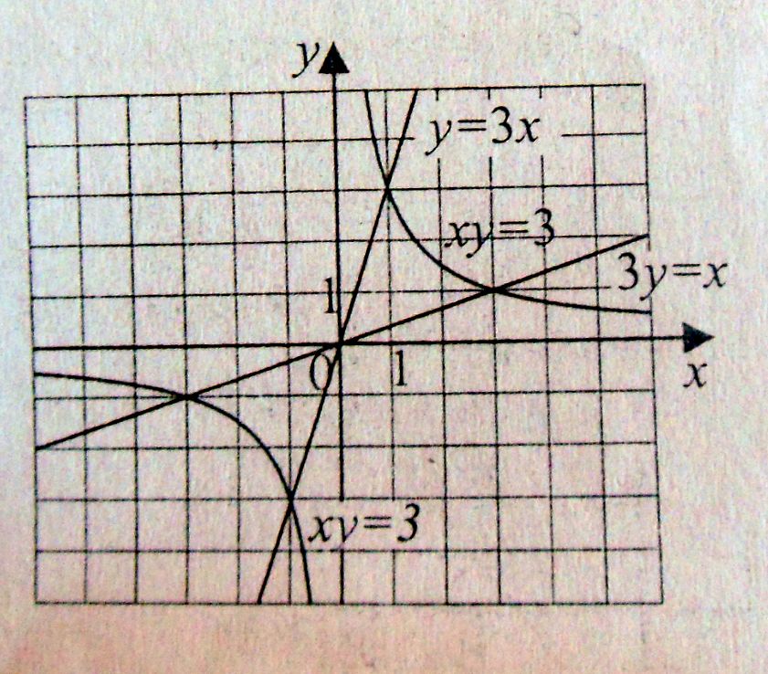 Используя рисунок, решите систему уравнений: (фигурная скобка) 3y=x ; xy=3