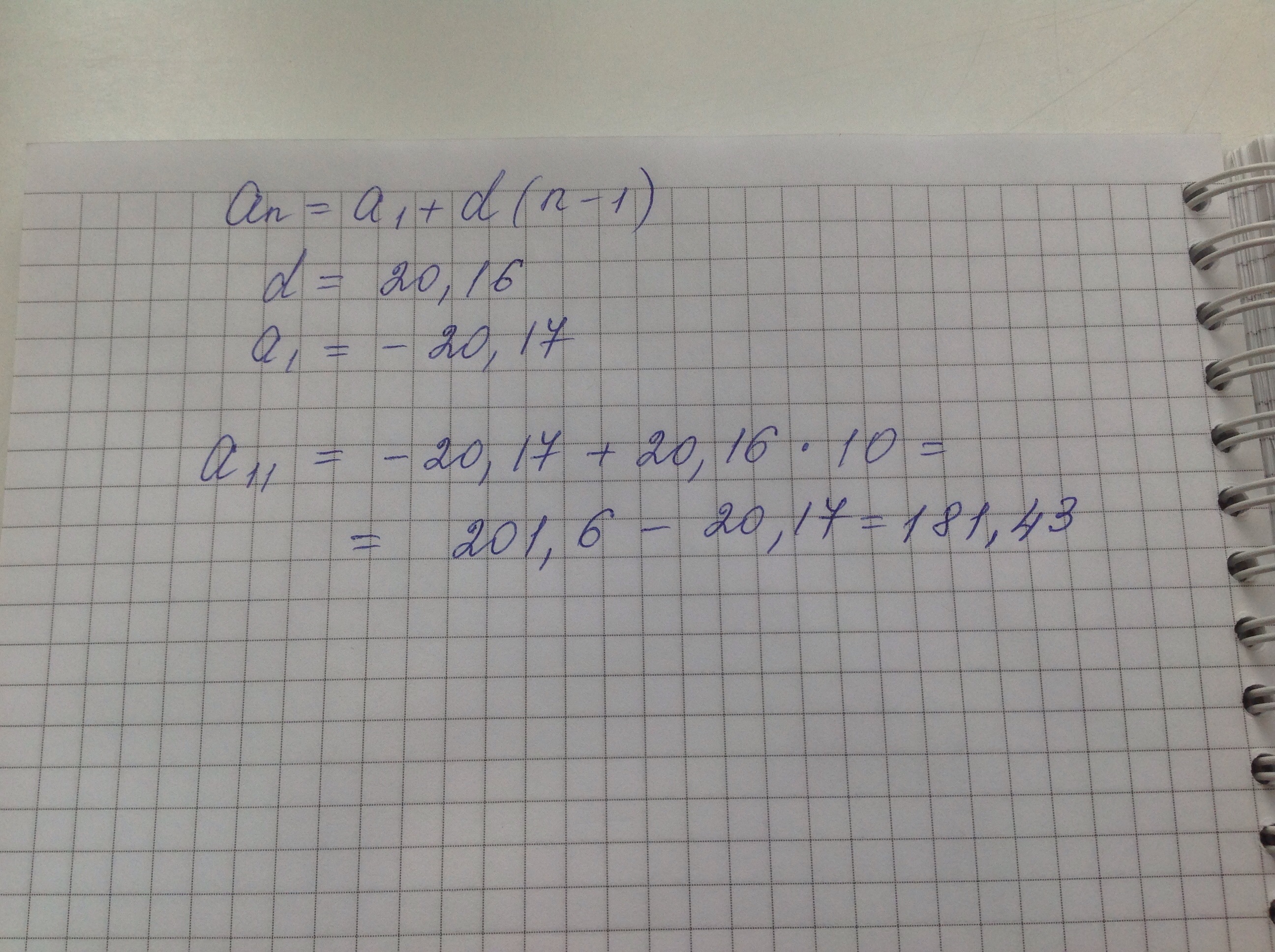 Дана арифметическая прогрессия ,разность которой равна 20,16, а1=-20,17 найдите а11